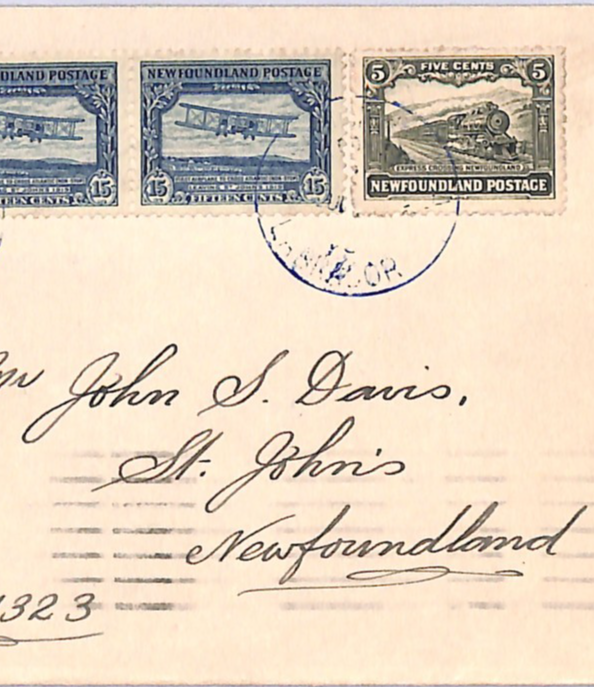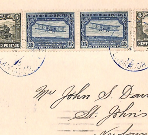 NEWFOUNDLAND 15c {2} Air 1933 FIRST FLIGHT Cover BLUE GOLD CONCESSIONS CDS WD310