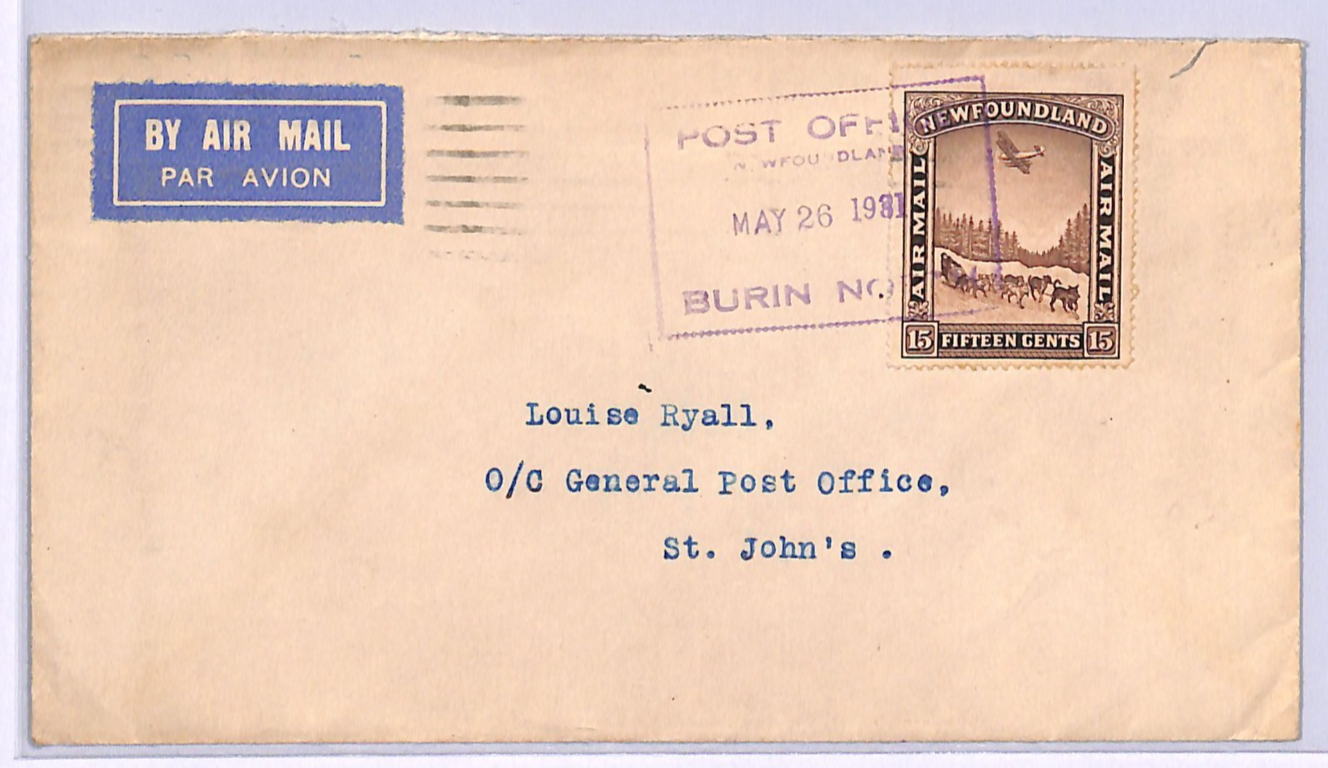 NEWFOUNDLAND Air Mail Cover Burin St Johns Canada 1931{samwells-covers}WD301