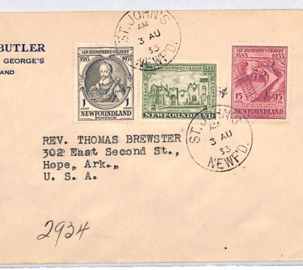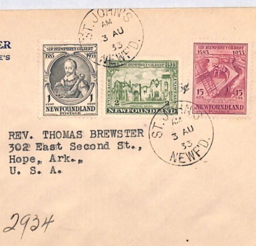 NEWFOUNDLAND Canada 1933 FDC *HUMPHREY GILBERT* 15c 2c 1c First Day Cover YH462