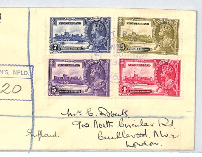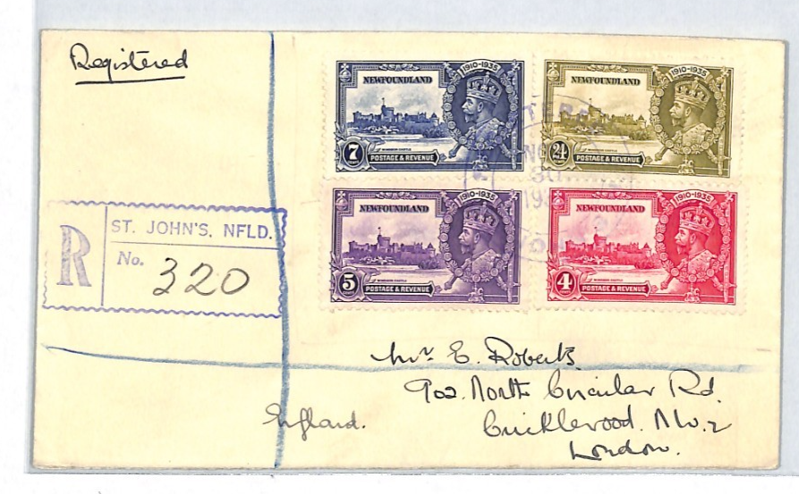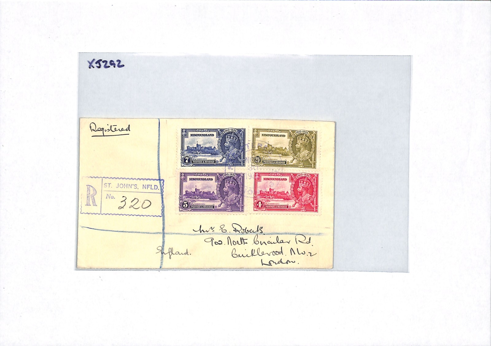 Canada NEWFOUNDLAND KGV Cover 1935 *SILVER JUBILEE* Set St Johns Registered ROYALTY XJ292