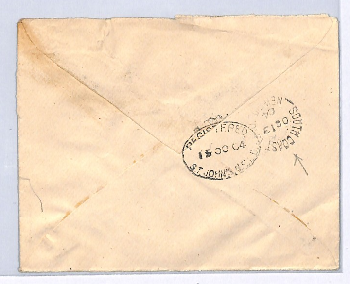 NEWFOUNDLAND Cover *COASTAL TPO WEST* Pushthrough St Johns Registered 1900 XK234
