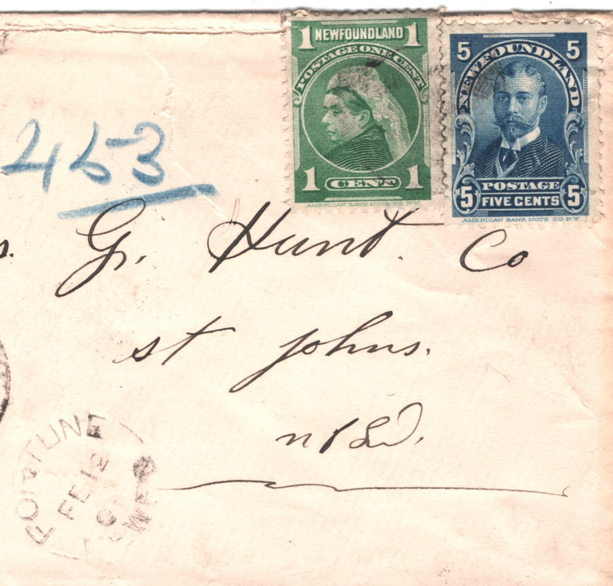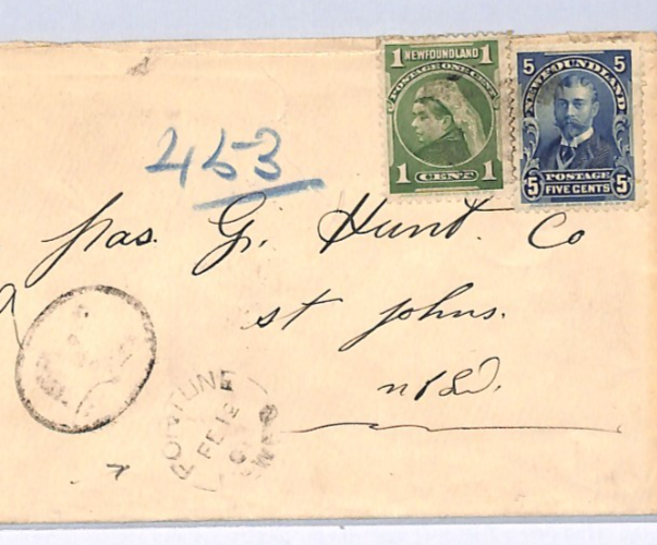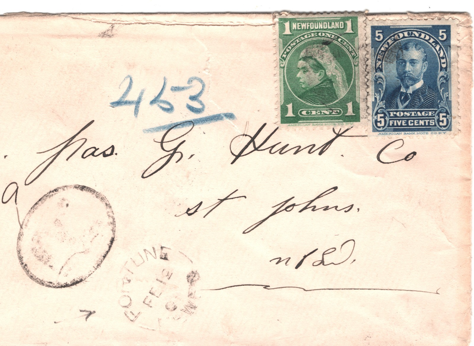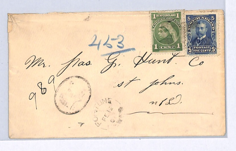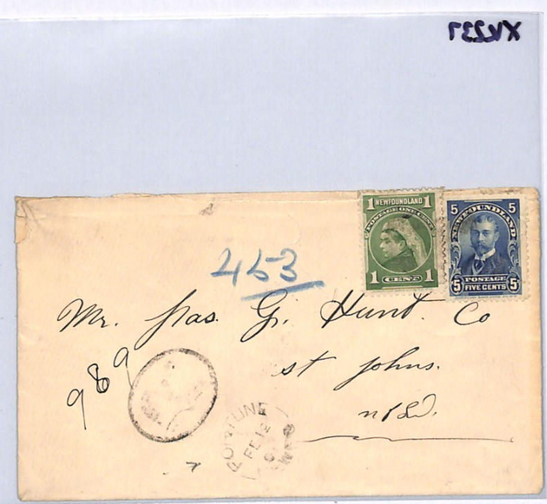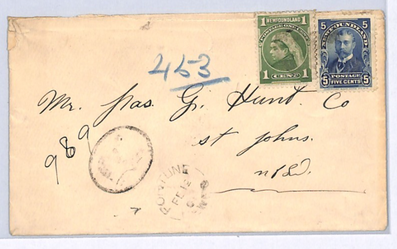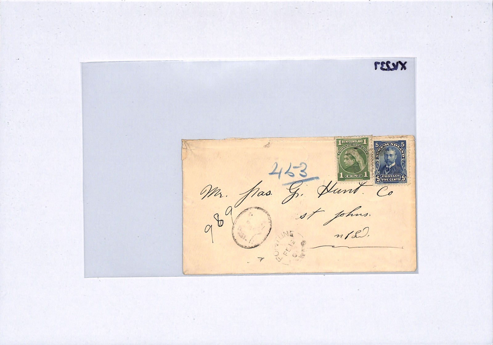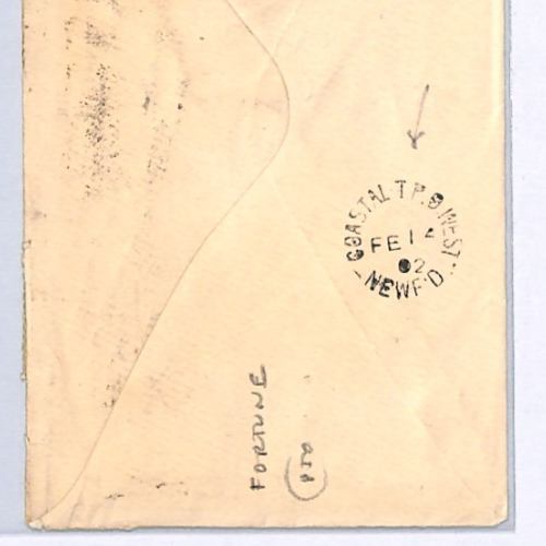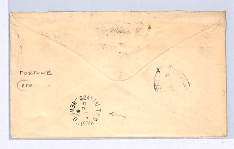 NEWFOUNDLAND RAILWAY MAIL Cover *FORTUNE* 1902 CDS Per COASTAL TPO WEST XK237