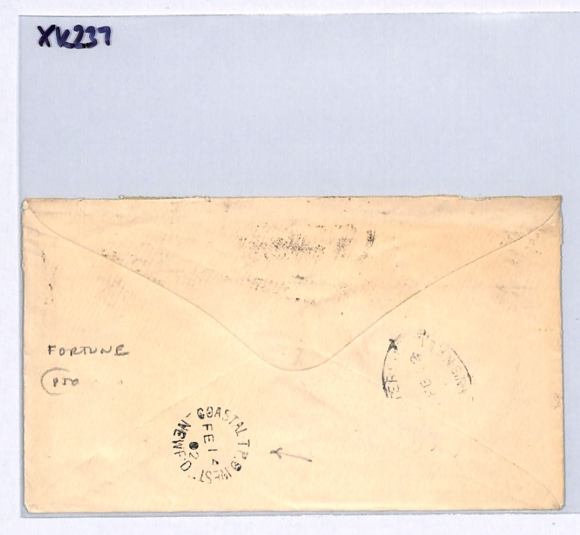 NEWFOUNDLAND Cover *COASTAL TPO WEST* Fortune St Johns Registered 1902 XK237