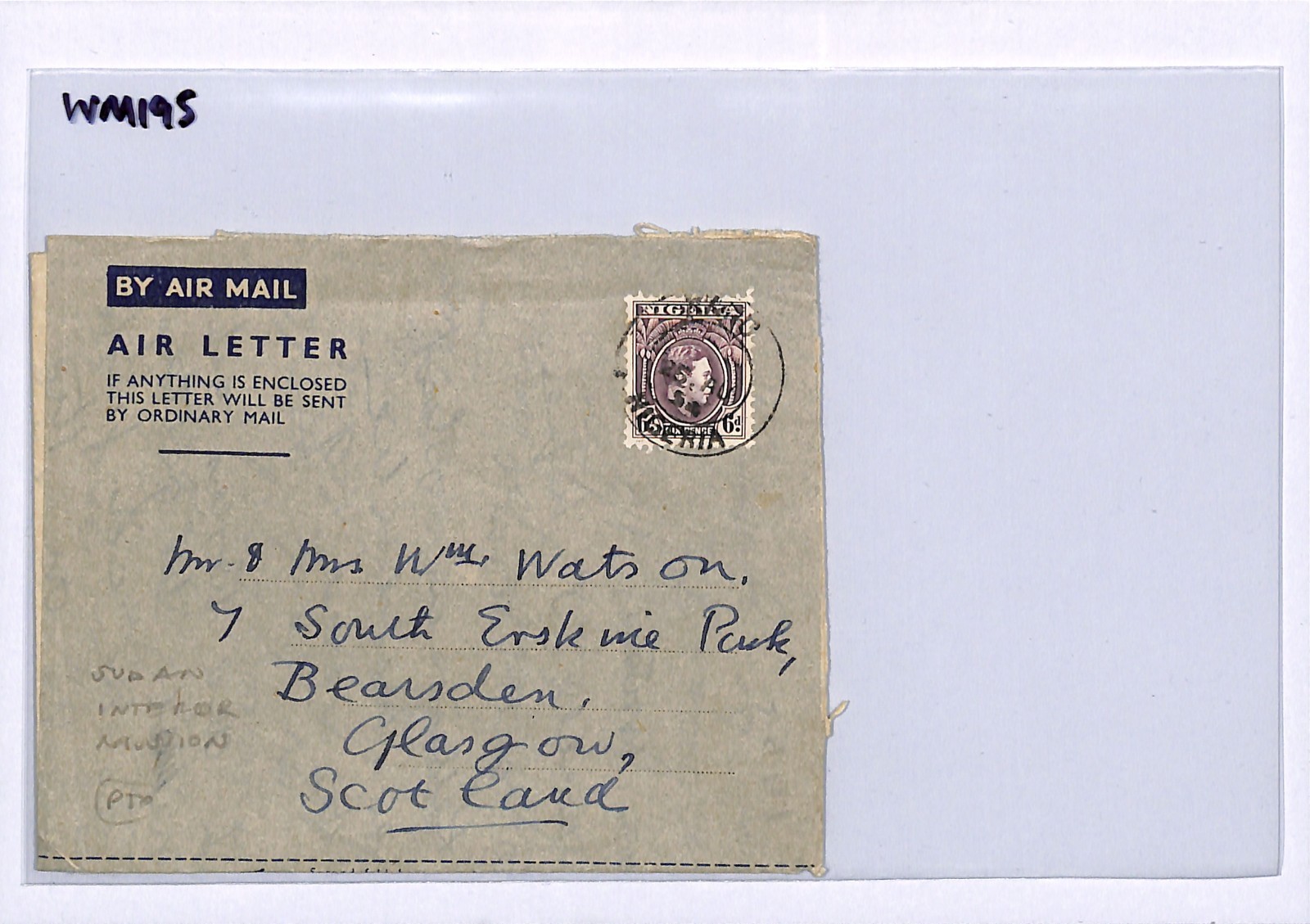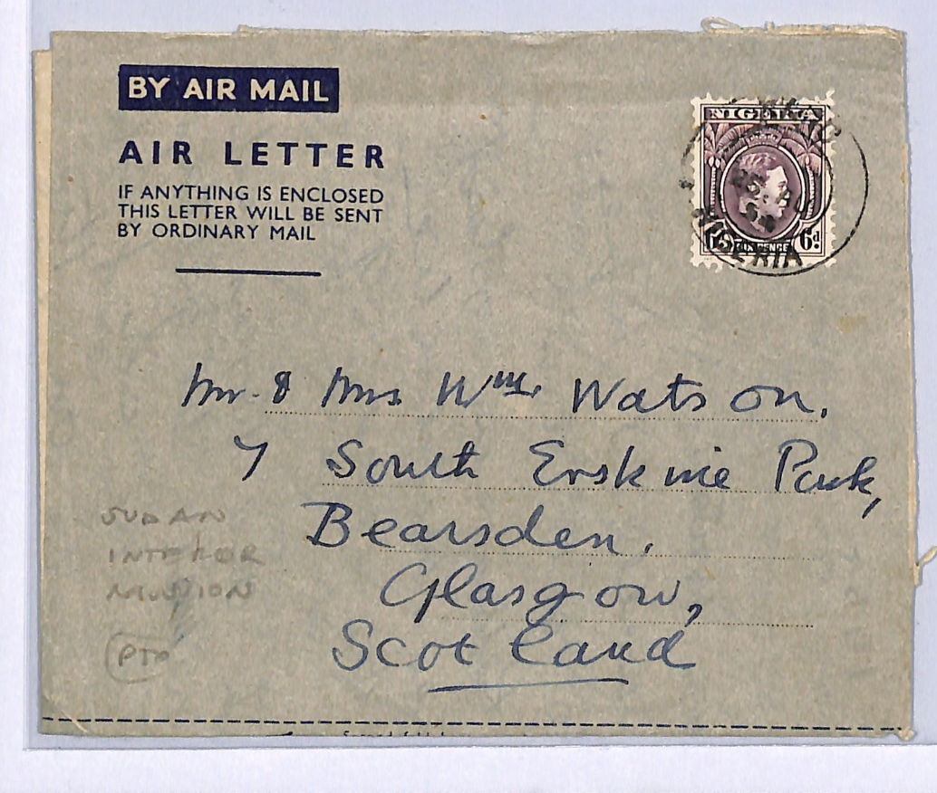 NIGERIA Air Letter Garko SUDAN INTERIOR MISSION GB Scotland Glasgow 1954 WM195