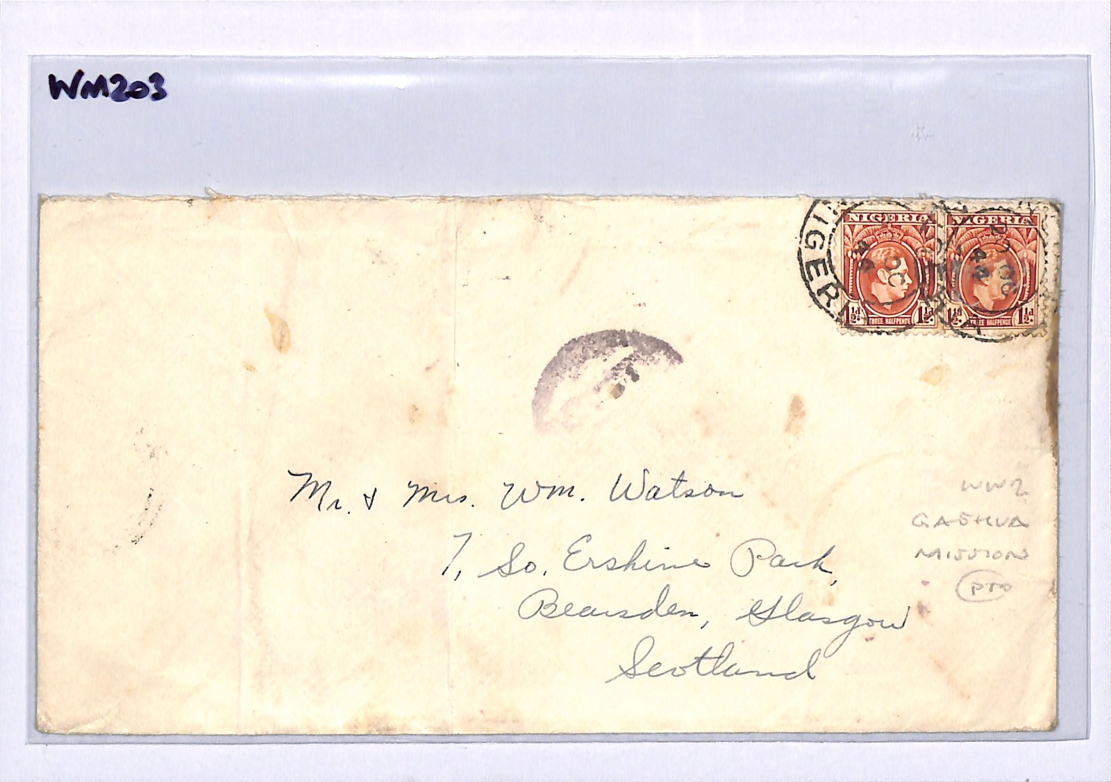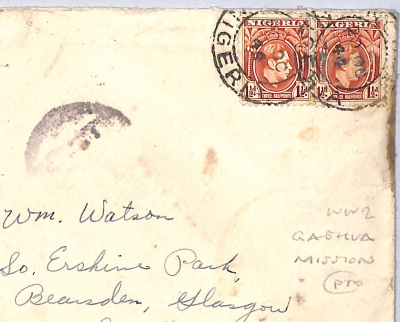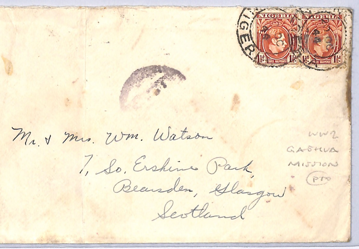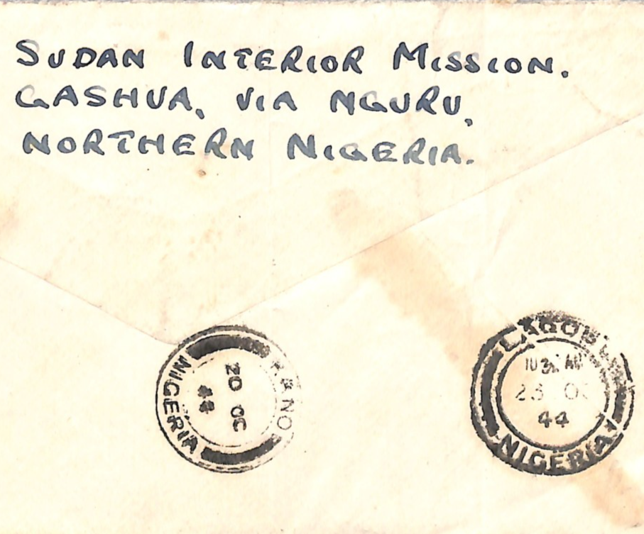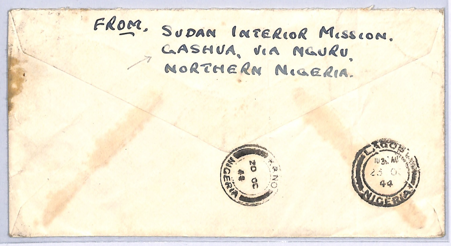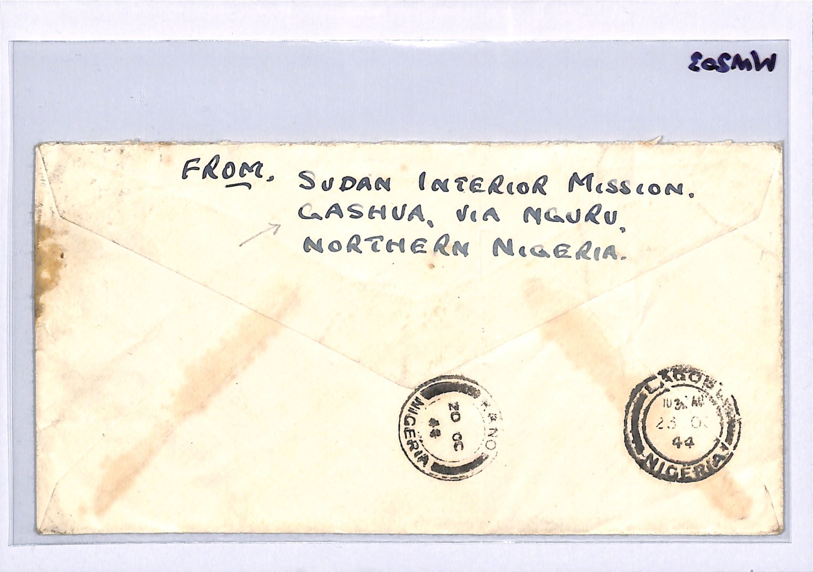 NIGERIA WW2 Cover Gashua SUDAN INTERIOR MISSION GB Glasgow 1944{Samwells}WM203