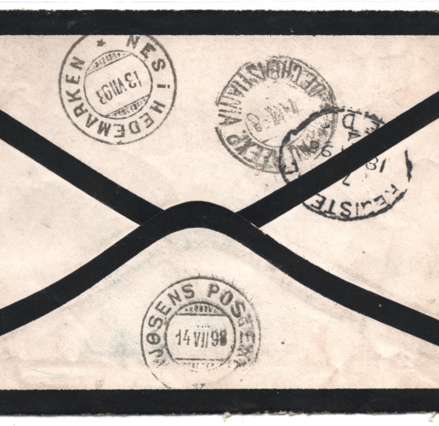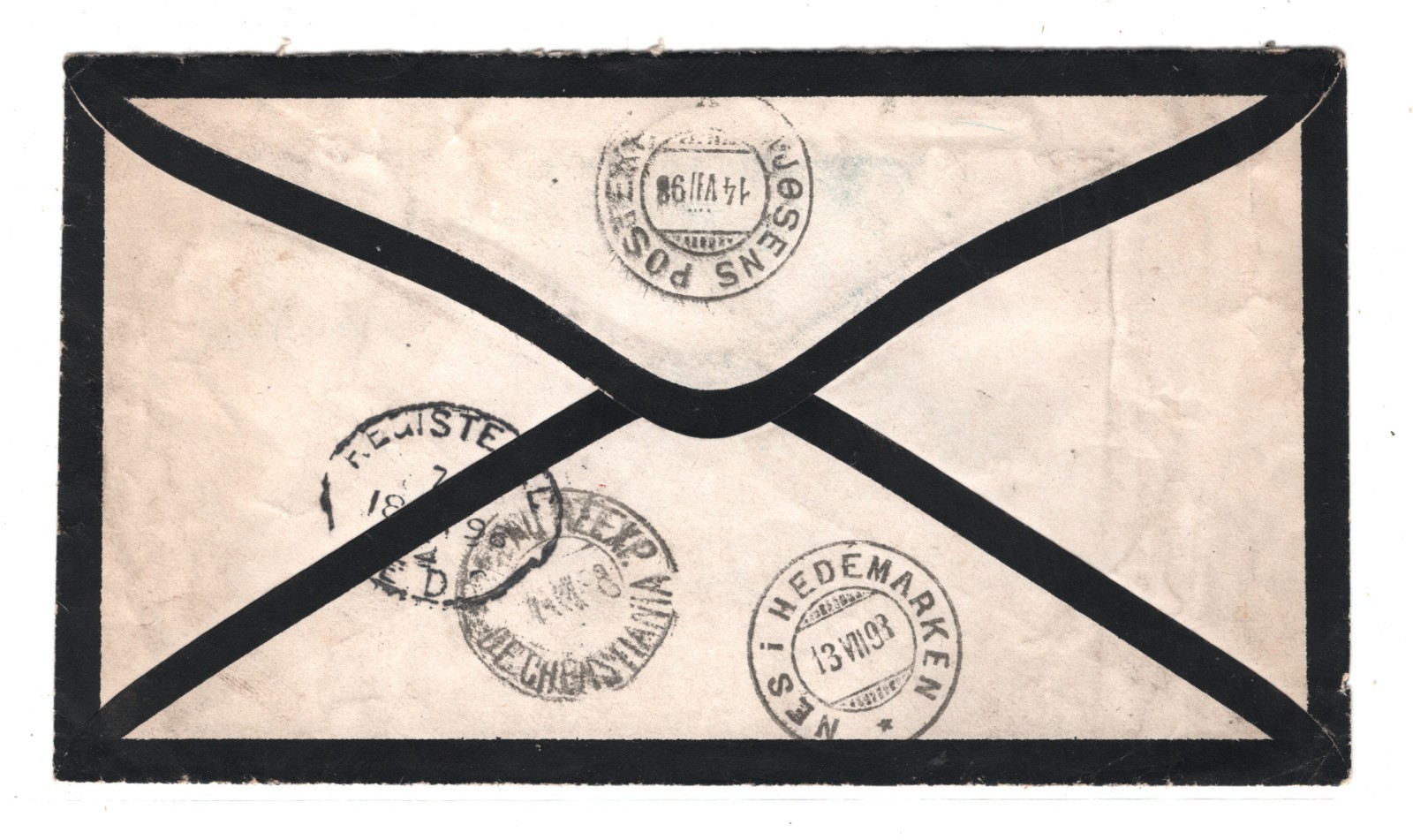 NORWAY Cover *STAVSJO* Registered Railway Mail TPO? 1898 POSTHORN STRIP London via Denmark XS137