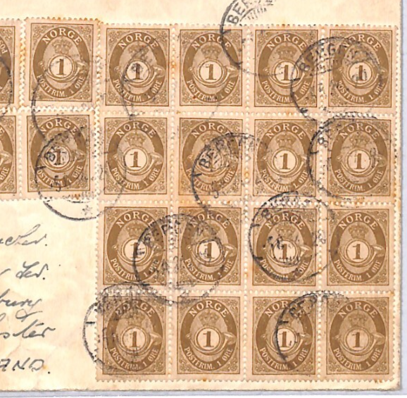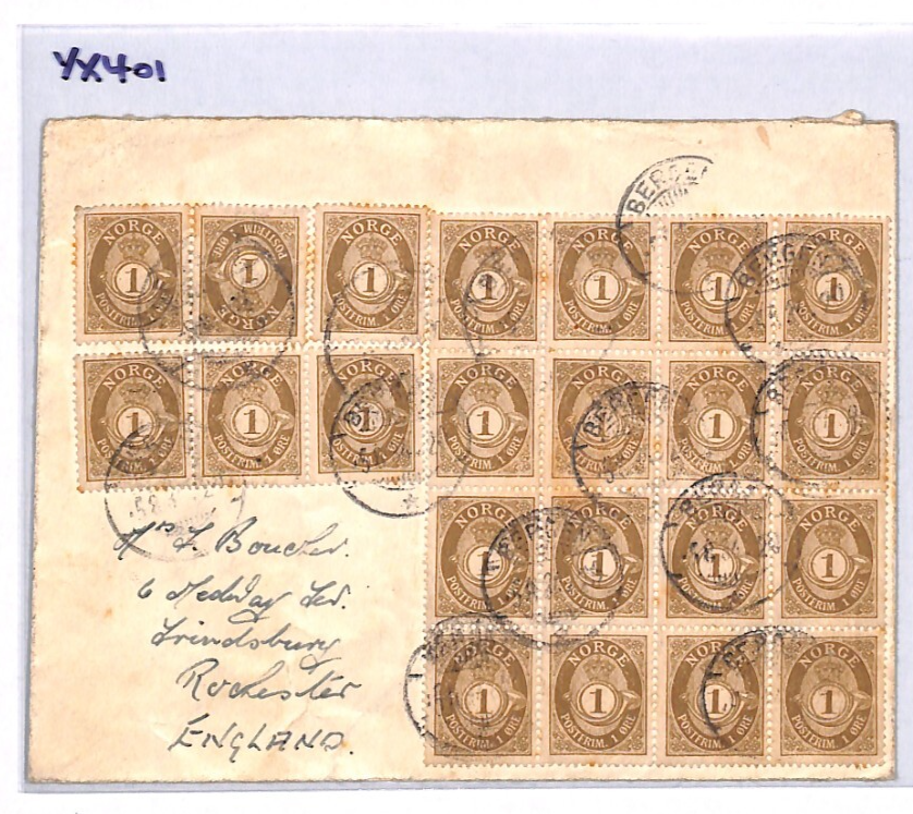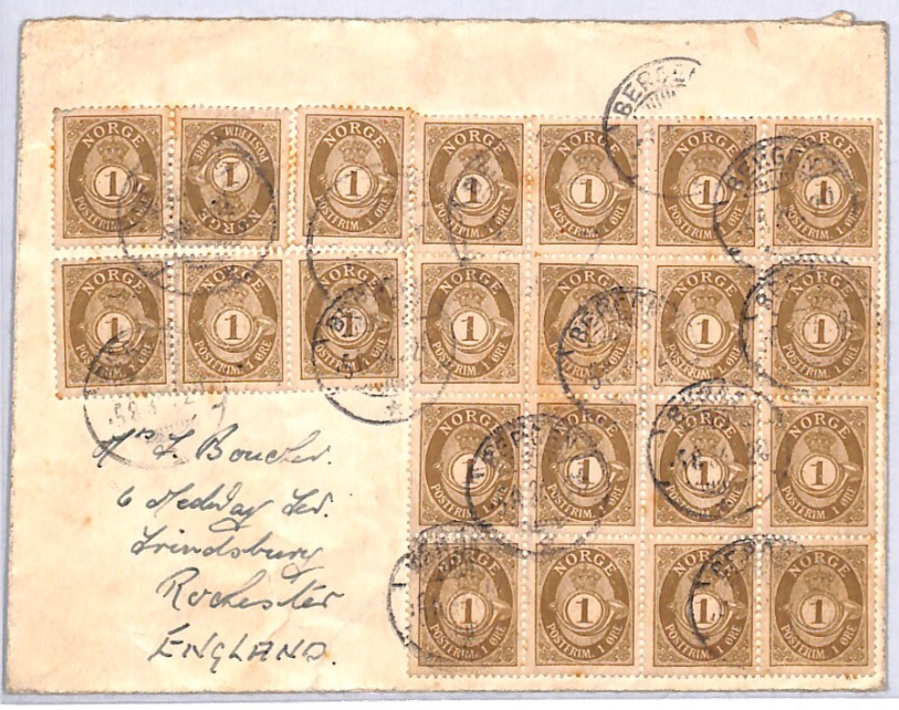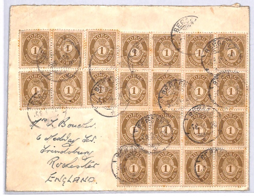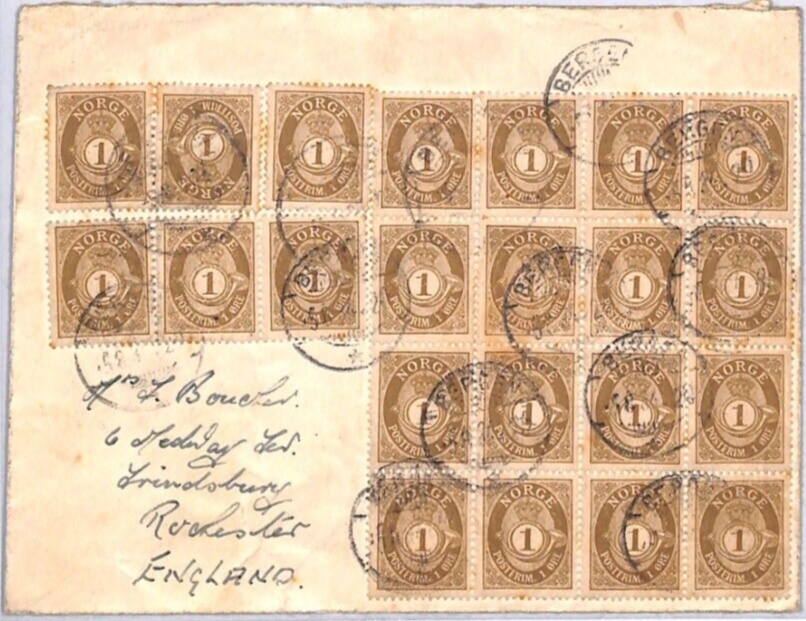 NORWAY Cover *BERGEN-NEWCASTLE POST EKSP.* CDS Maritime? GB Rochester 1934 BLOCK FRANKING YX401