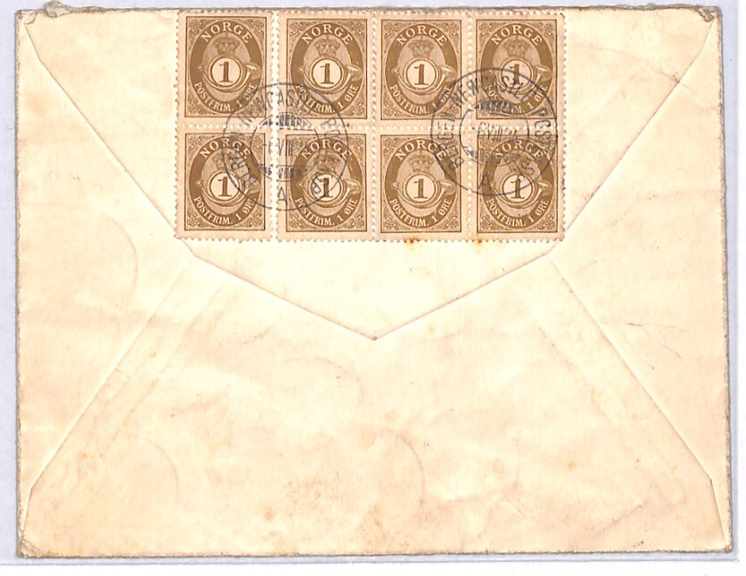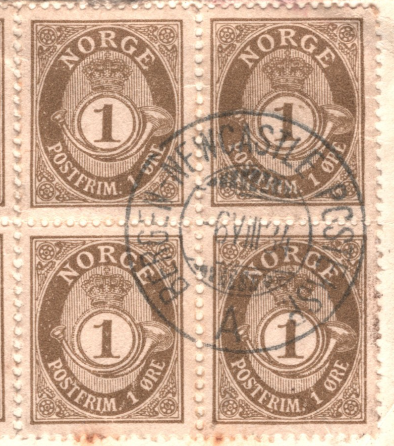 NORWAY/GB PAQUEBOT Cover *BERGEN-NEWCASTLE* 1934 CDS Ship Cancel BLOCKS YX401