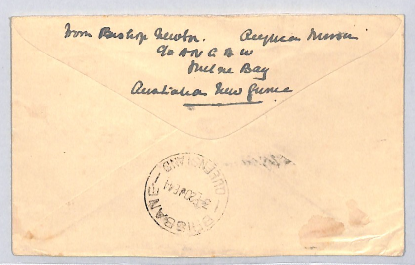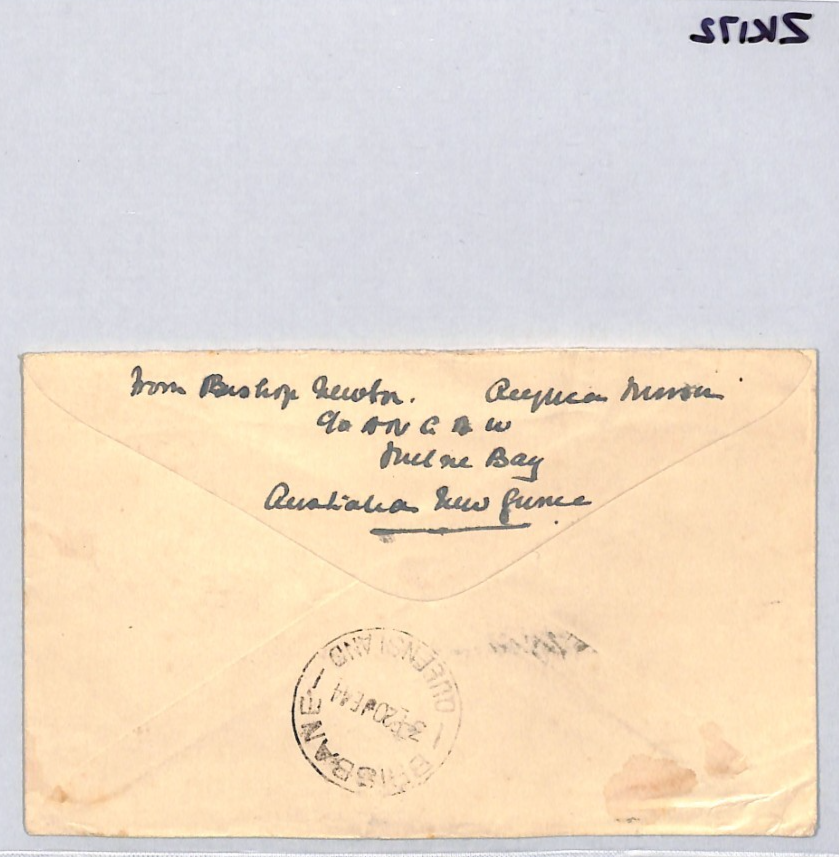 PAPUA NEW GUINEA Anglican Mission WW2 Censor TAXE Cover 1944 BISHOP NEWTON ZK172