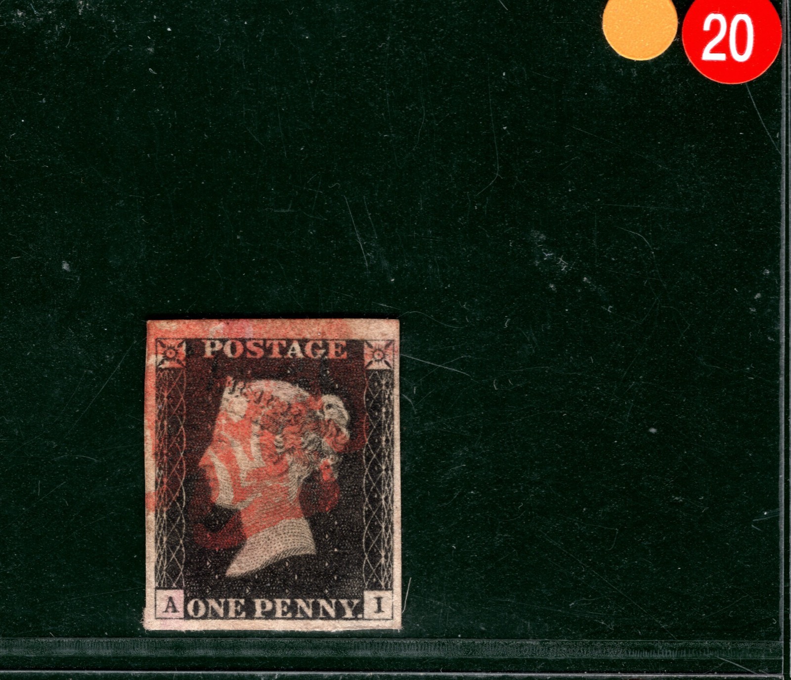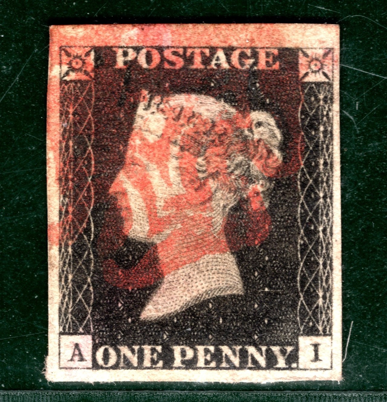 PENNY BLACK 1840 QV GB Stamp SG.2 1d Plate 2 (AI) AS14 *MARGINAL* Red MX YOR20