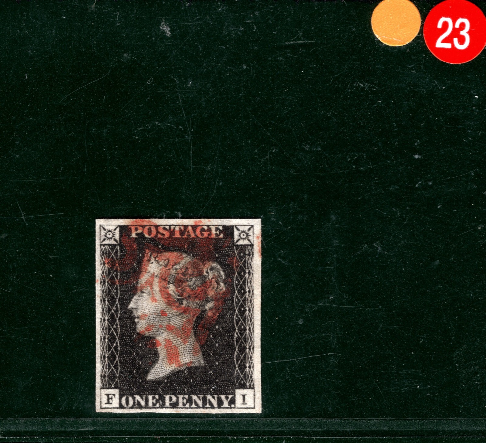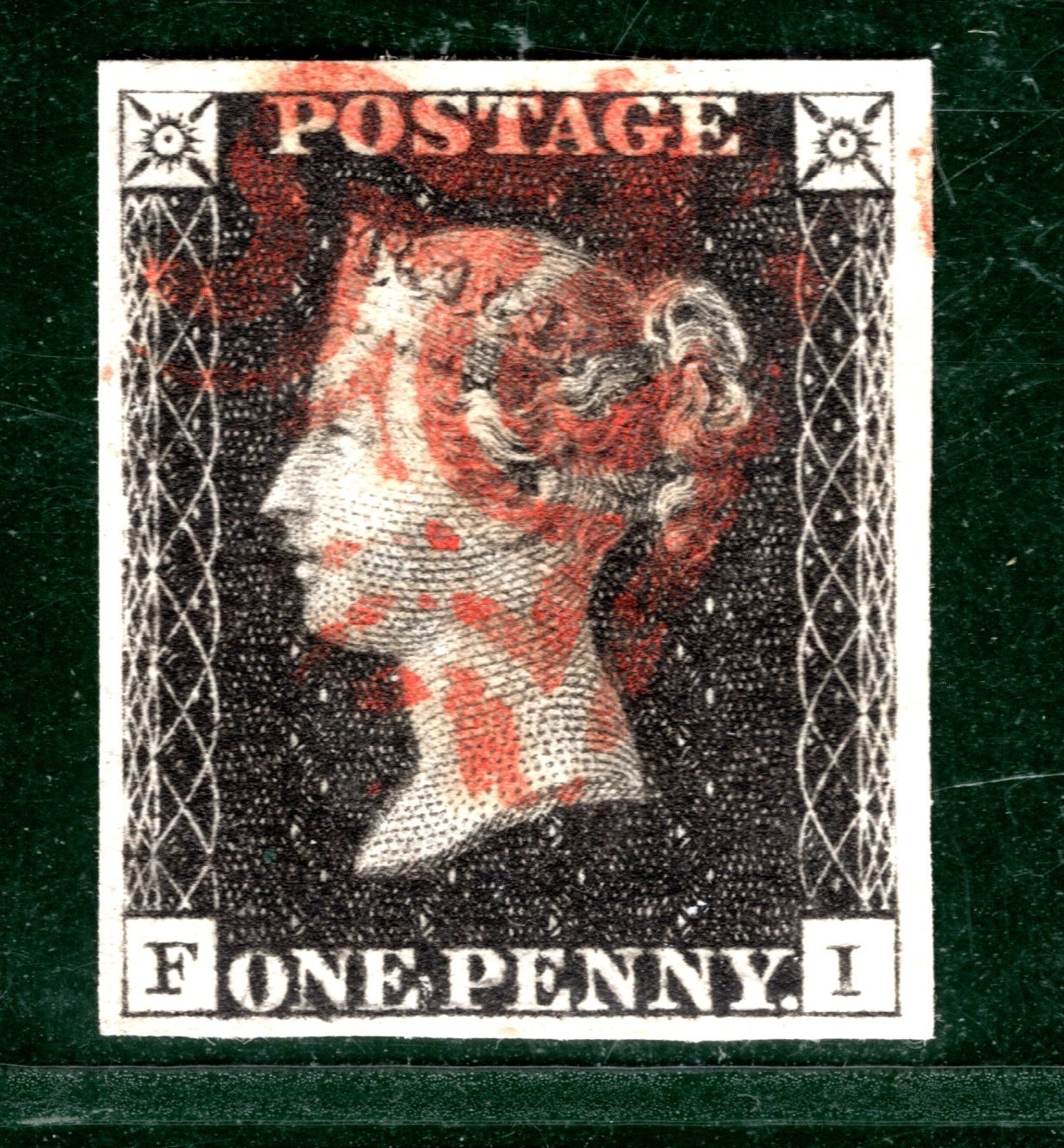 PENNY BLACK 1840 QV GB Stamp SG.2 1d Plate 5 (FI) Red MX Used AS25 Cat £375 YOR23