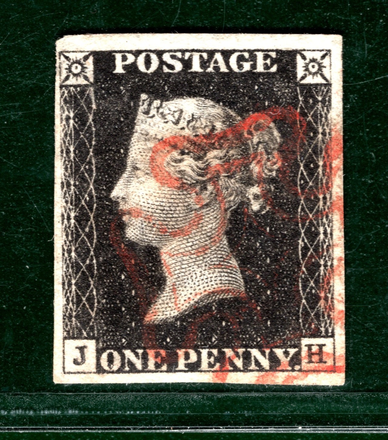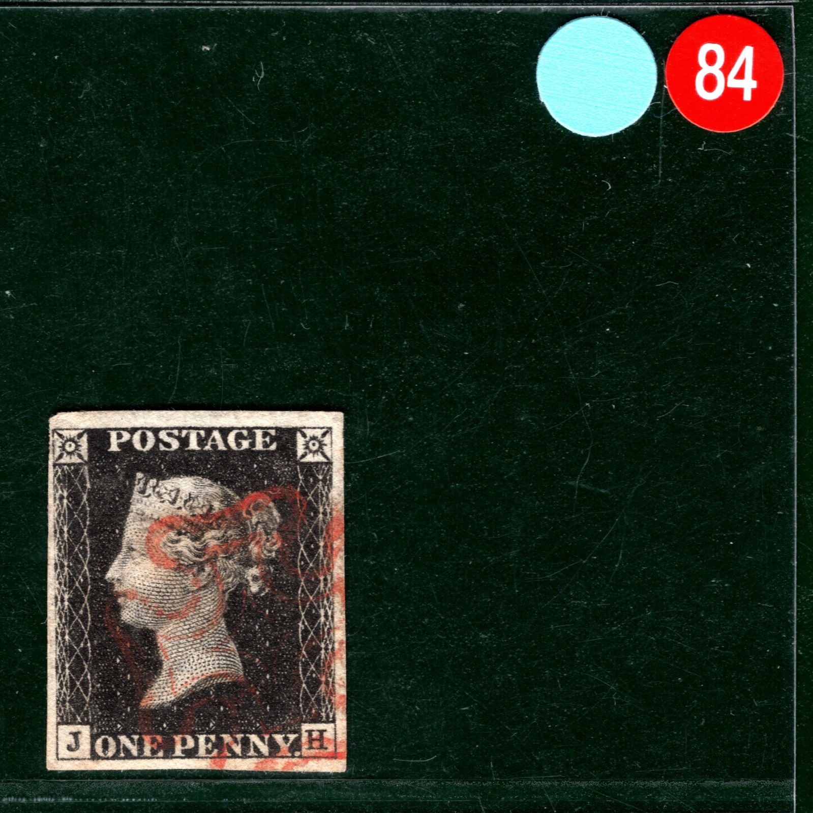 PENNY BLACK 1840 Stamp GB SG.2 1d Plate 4 (JH) Light Red MX AS23 Cat £400 SBR84