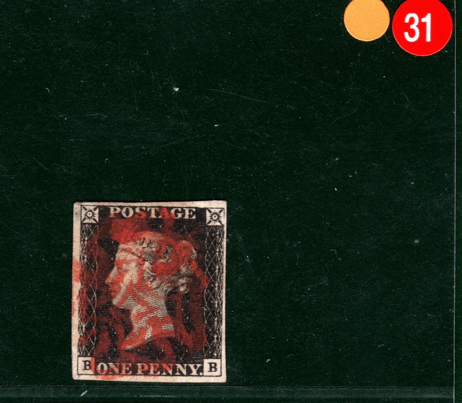 PENNY INTENSE BLACK 1840 QV GB SG.1 1d Plate 4 (BB) AS22 Red MX Cat £550 YOR31