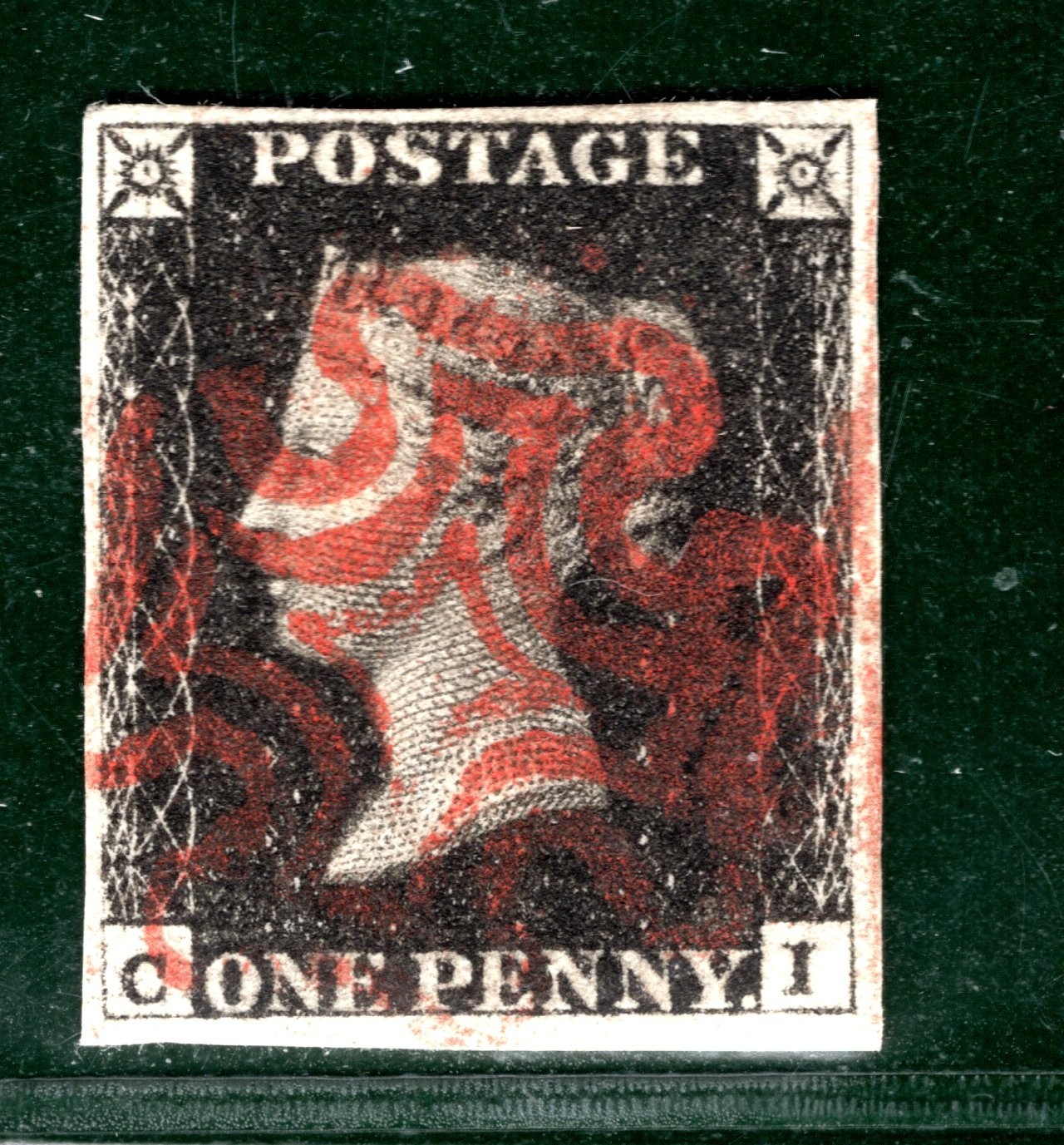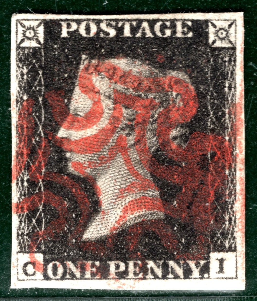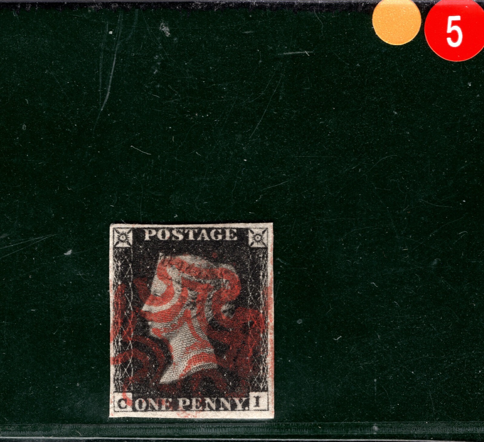 PENNY INTENSE BLACK 1840 QV GB Stamp SG. 1d Plate 6 (CI) Super Red MX AS40 Cat £525 YOR5