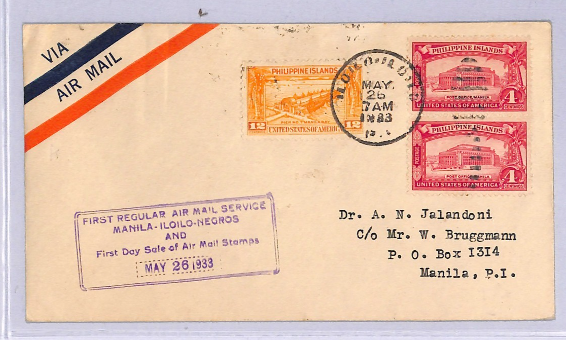 PHILIPPINES Air Mail 1933 Cover FIRST FLIGHT Iloilo-Manila MULLER #100a {Joffe}WT119
