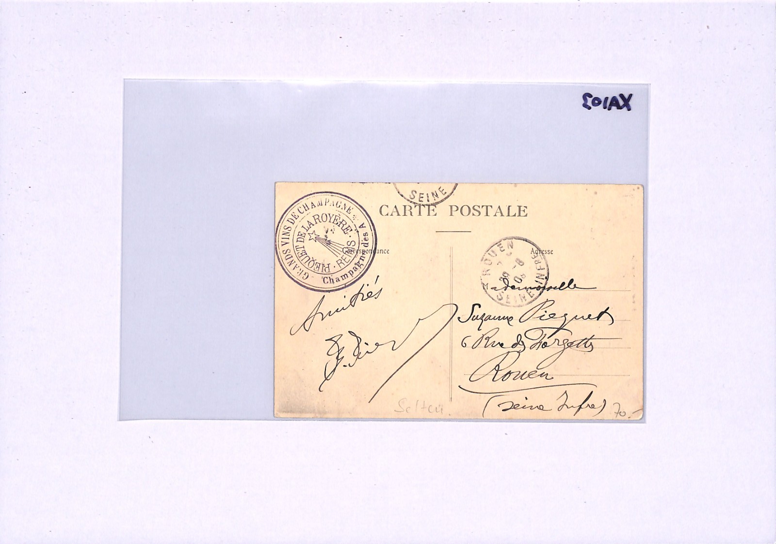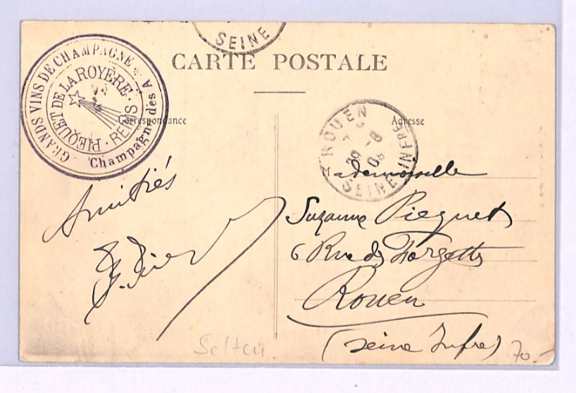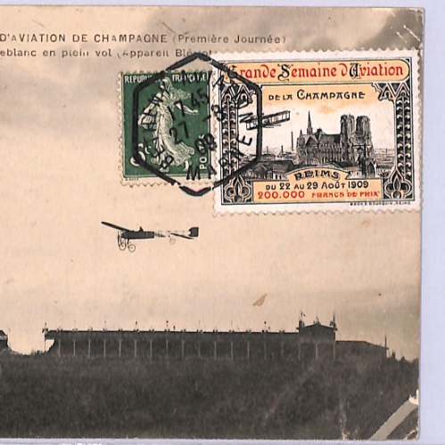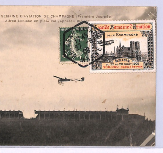 PIONEER AVIATION France Card 1909 *SEMAINE/CHAMPAGNE* LABEL View-Side WINE XA103