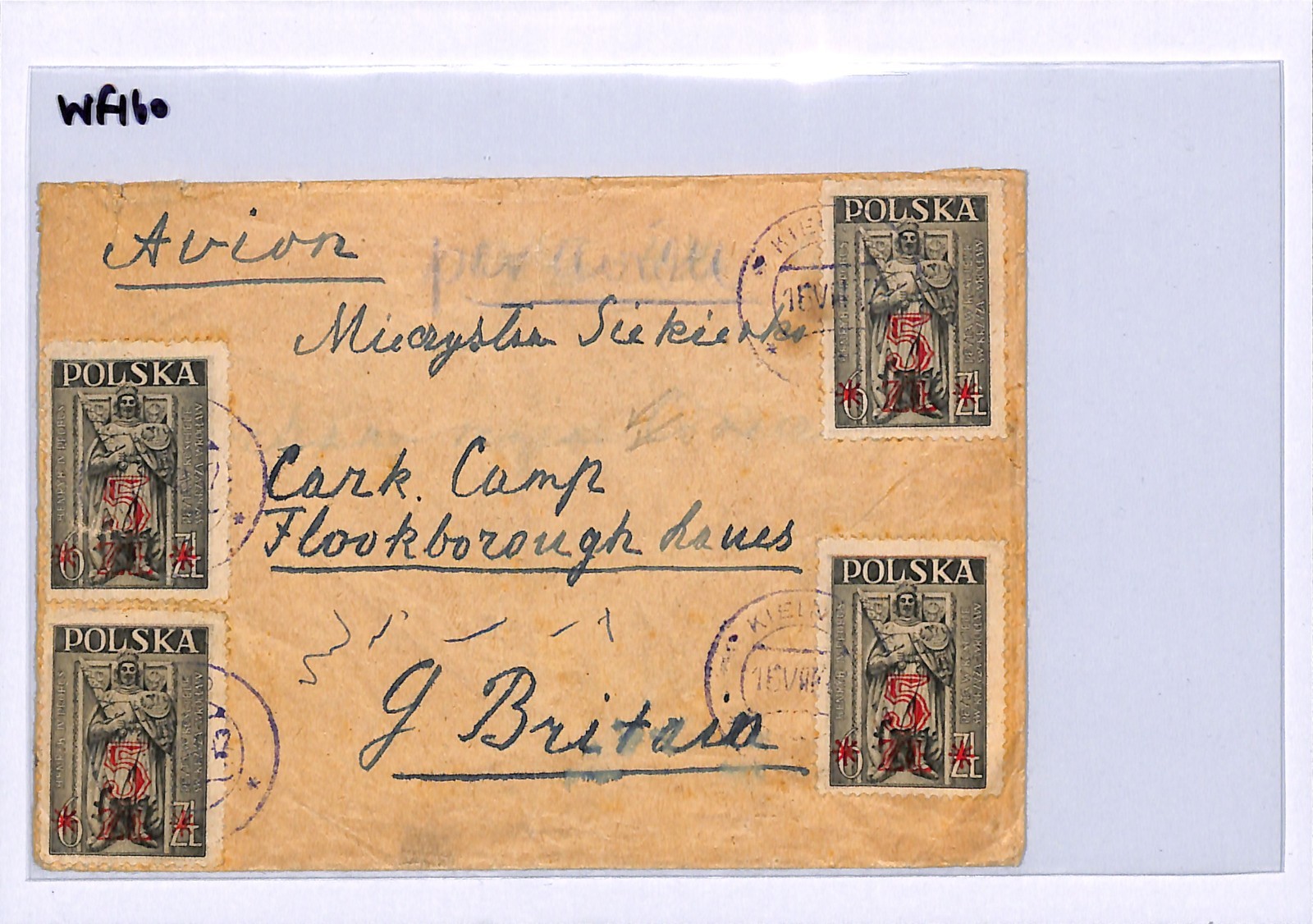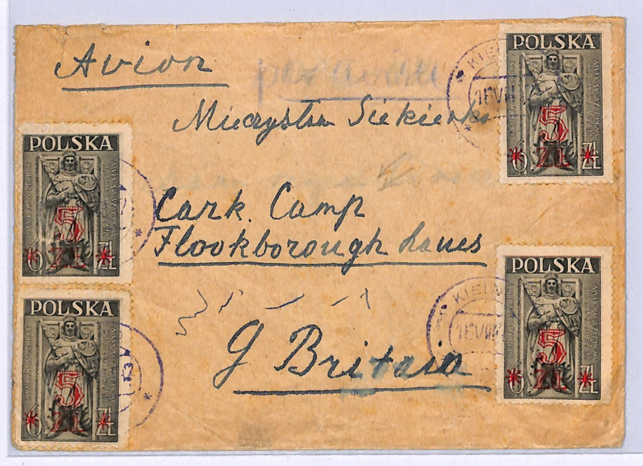 POLAND Cover Kielno 6zł/5zł Surcharges GB *CARK?? CAMP* Loughborough? 1947 WF160