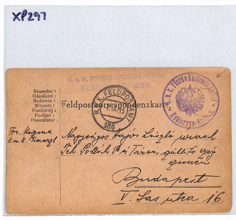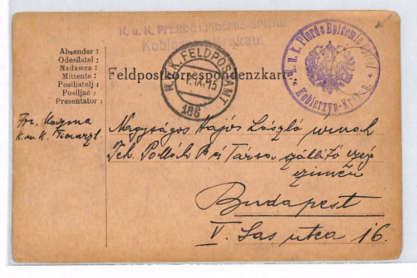 AUSTRIA-HUNGARY WW1 Card MILITARY HORSE EPIDEMIC HOSPITAL POLAND Kraków Kobierzyn Budapest 1915 XP297