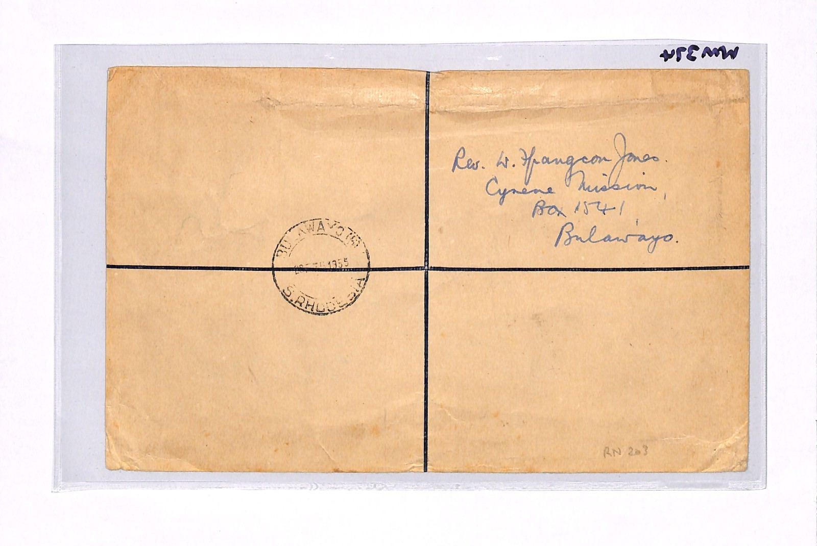 RHODESIA & NYASALAND Cover KGVI QEII MIXED REIGNS Reg 1955 *CYRENE MISSION*WM374