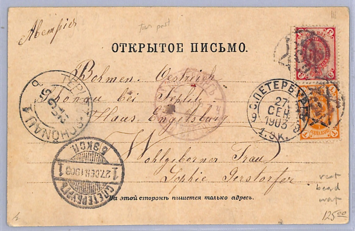 RUSSIA Postcard St Petersburg *CHINA PPC* AUSTRIA BOHEMIA Teplitz-Schönau (Teplice) 1903 WA118