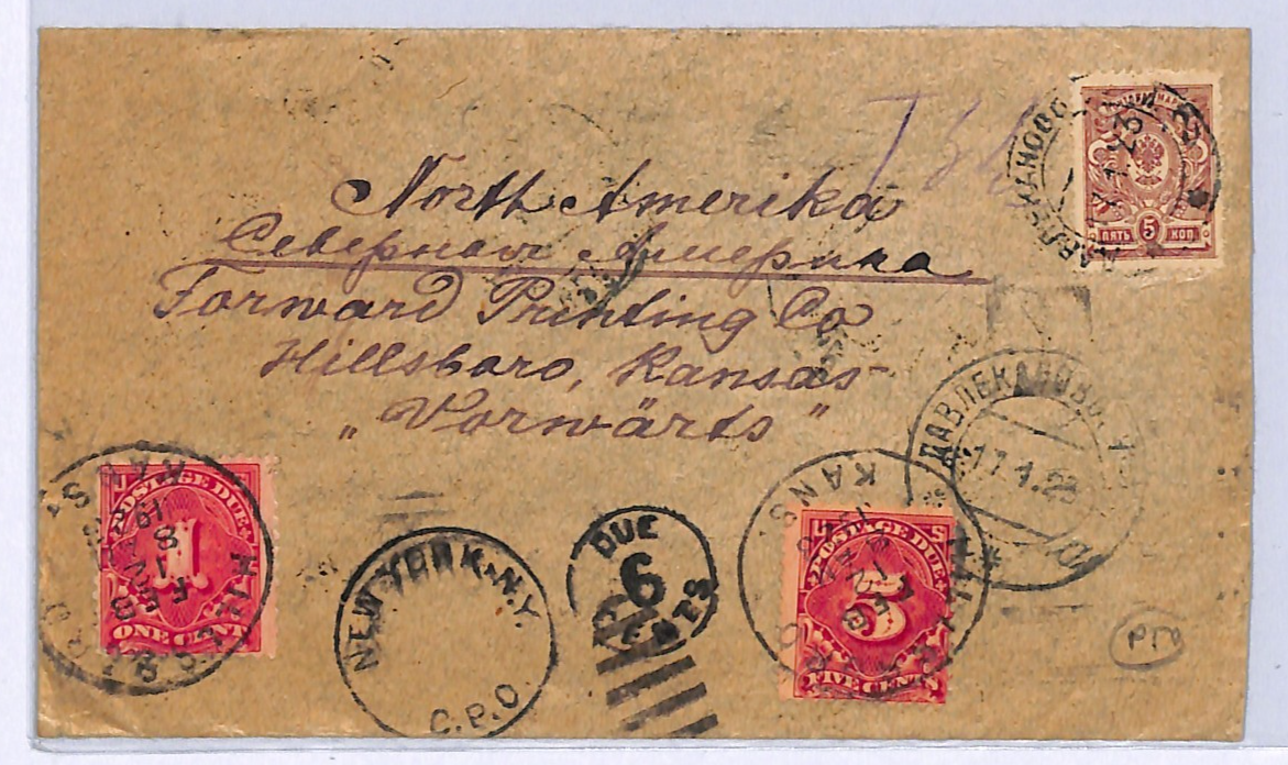 RUSSIA Underpaid Cover Davlekanovo BLOCK FRANKING USA 6c POSTAGE DUES 1923 WA122