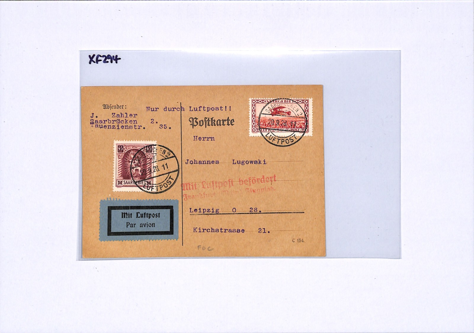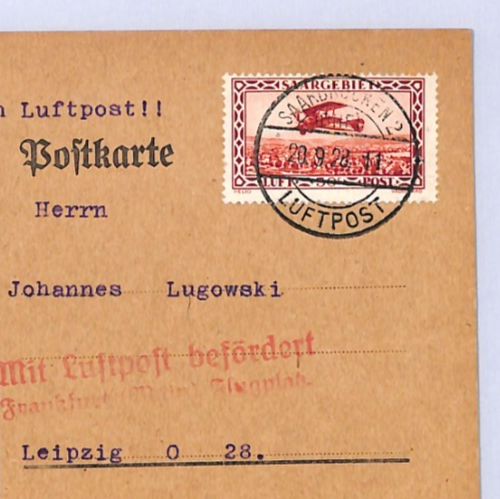 SAARGEBIET Germany Air Mail Card 1928 Saarbrucken Dresden {samwells}XF294
