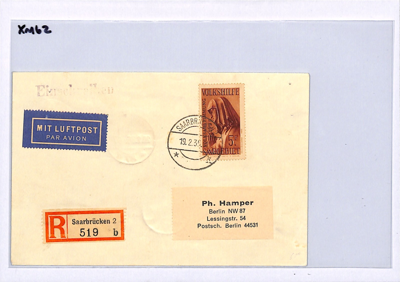 SAAR Cover *VOLKSHILFE* (1934) 5f Top HIGH VALUE Plebiscite 1935 O/p Air XM62