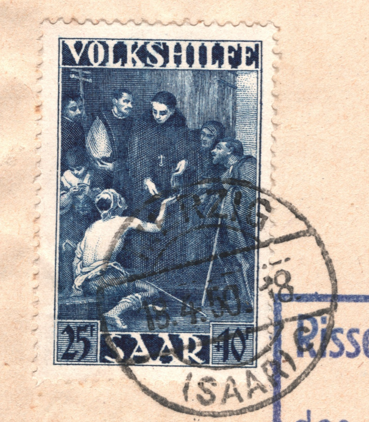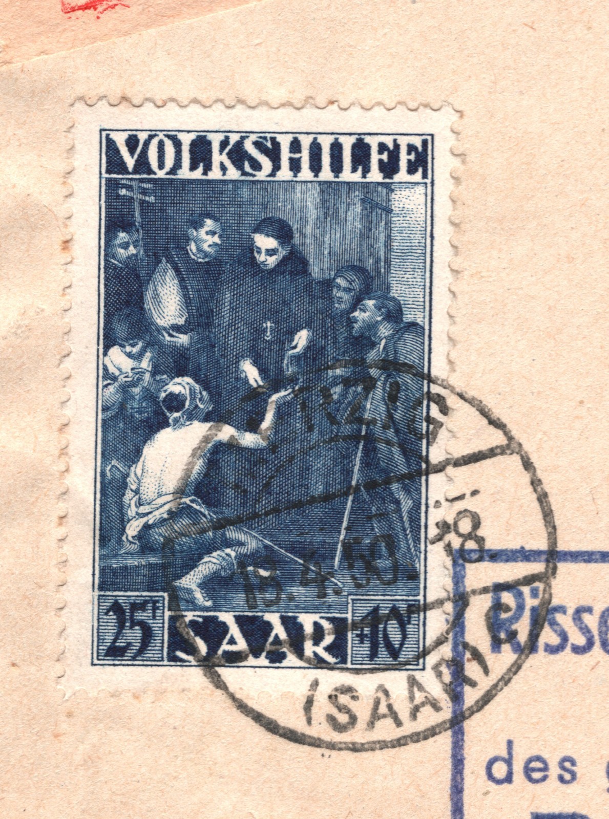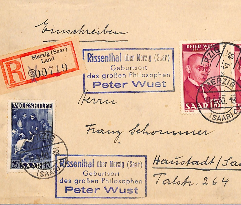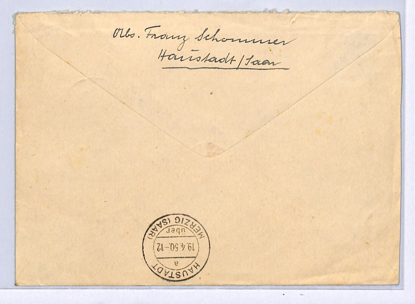 SAAR Cover *VOLKSHILFE* (1949) 25+10f Used 1950 Cover PETER WUST Pair Merzig Registered Haustadt {samwells}XM65