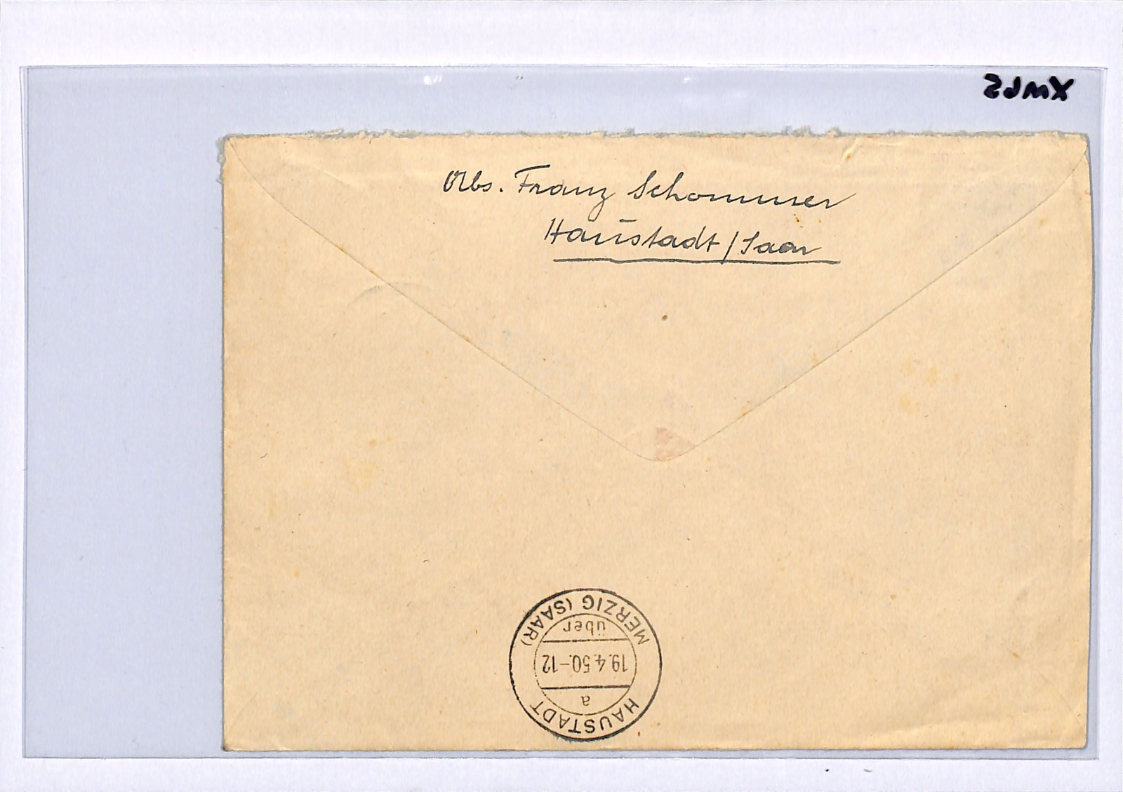 SAAR Cover *VOLKSHILFE* (1949) 25+10f Used 1950 Cover WUST Pair Merzig Reg XM65