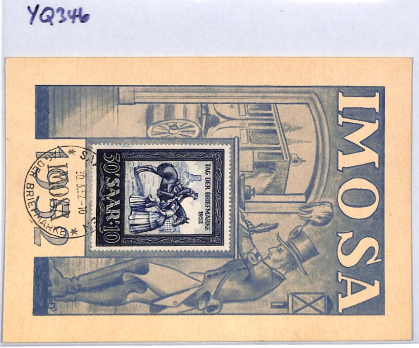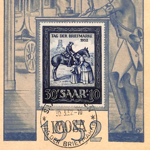 SAAR *IMOSA* 1952 MAXI-CARD Saarbrucken 30+10f POSTMAN HORSE {samwells}YQ346