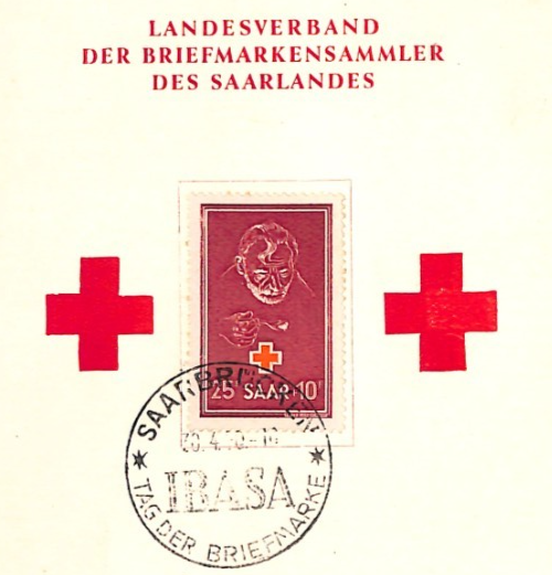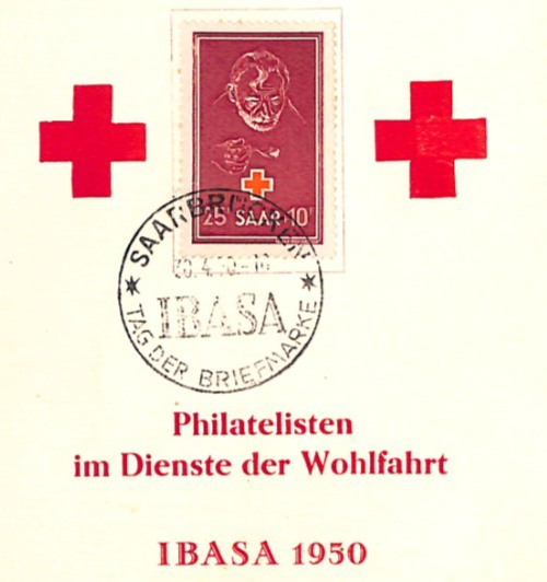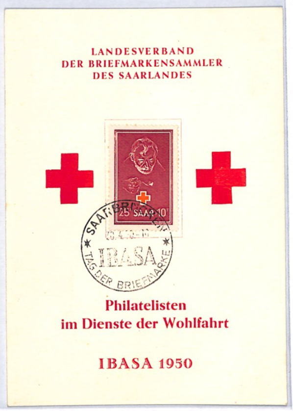 SAAR Red Cross Fund 1950 25+10f Postcard Saarbrucken IBASA MAXI-CARD YQ345