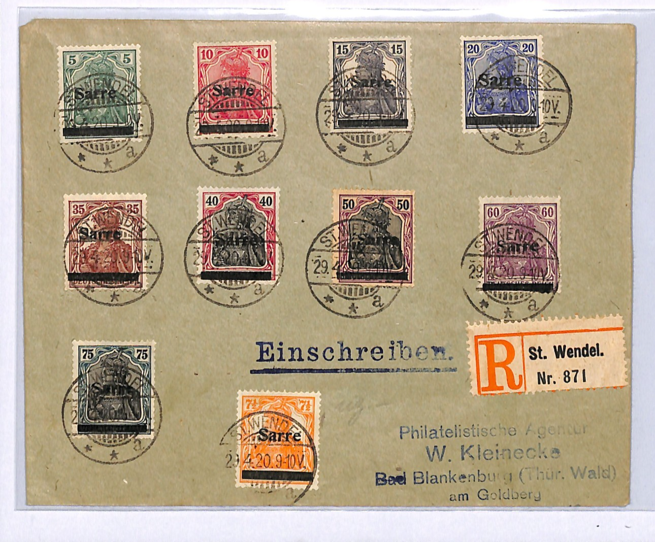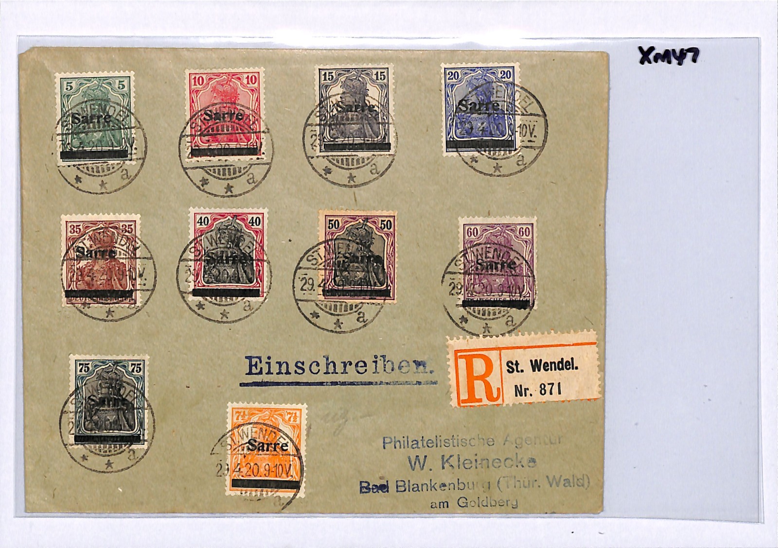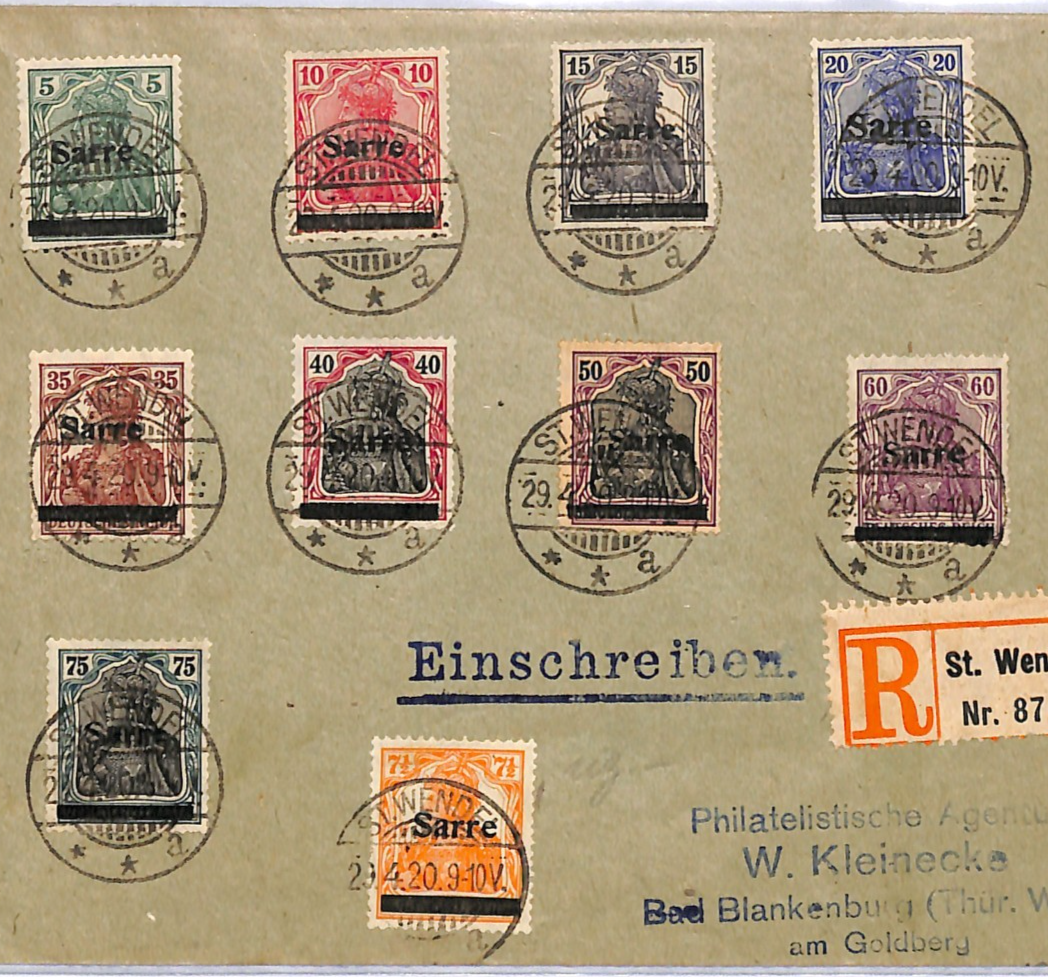 SAAR *Sarre* GERMANIA Overprints{10} Cover St Wendel Reg. Bad Blankenburg XM47