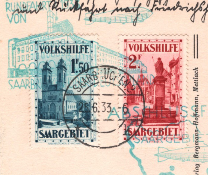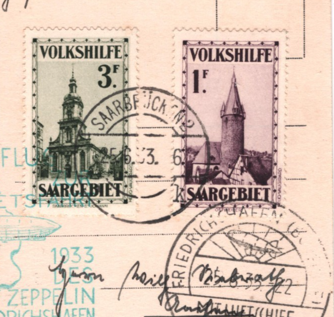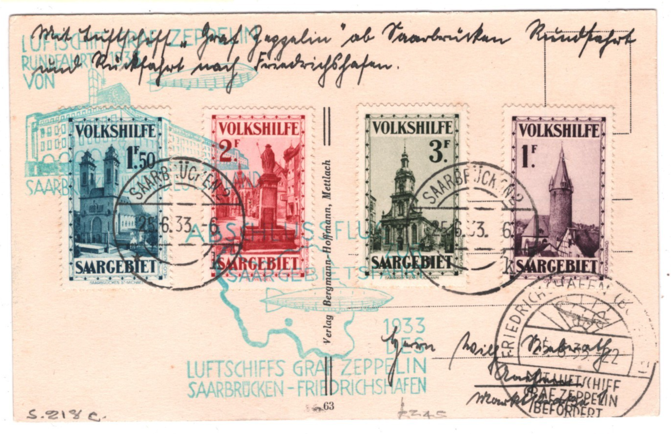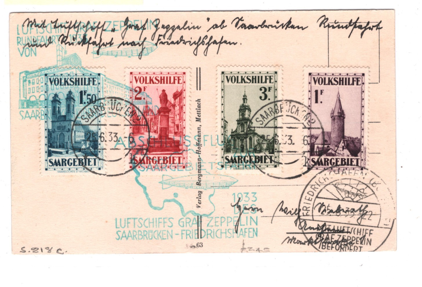 Germany SAARGEBIET GRAF ZEPPELIN Card 1933 RUNDFAHRT Saarbrücken Friedrichshafen KZ305