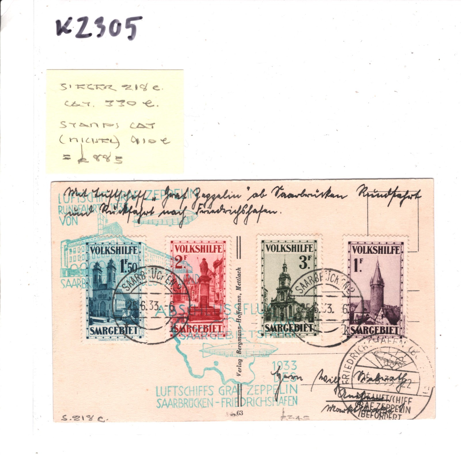 SAAR Volkshilfe HIGH VALUES Card *ZEPPELIN* Flight 1933 RUNDFAHRT Air Mail KZ305