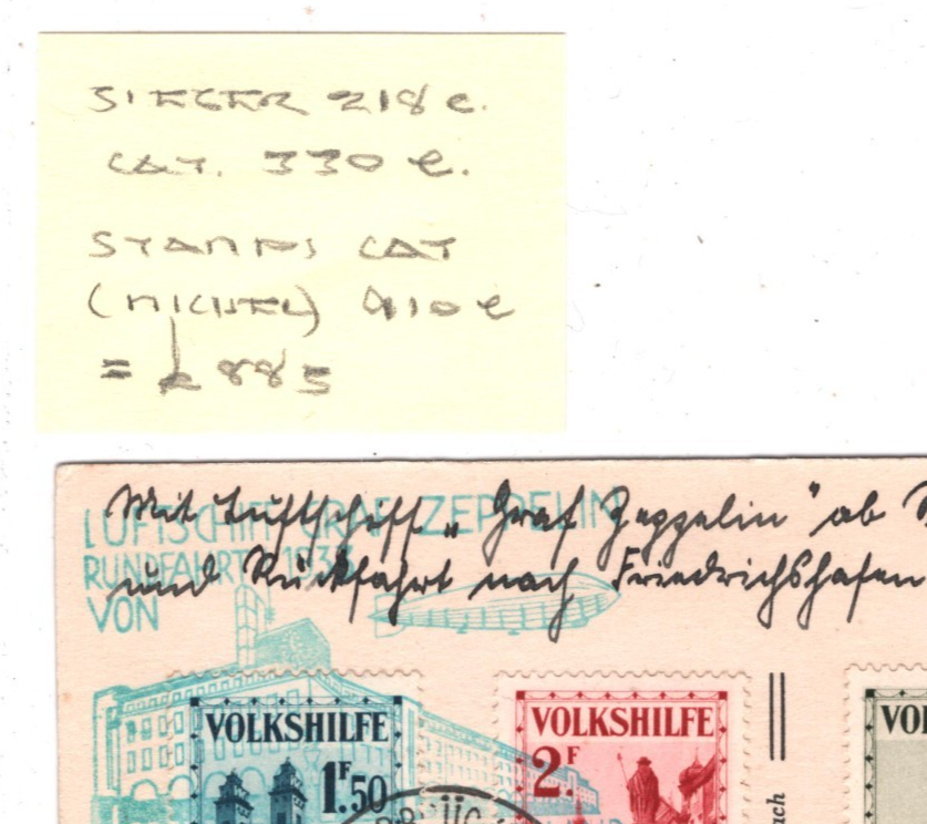 VERY SCARCE USAGE of 1932 CHARITY ISSUES on Graf Zeppelin flown card. HIGH CAT VALUE. Attractive. UNUSUAL ITEM. Very Fine for an item of this type & period. Please look at all the scans to help form your own opinion (WAF).