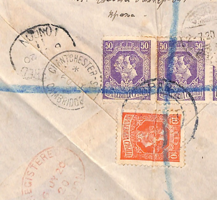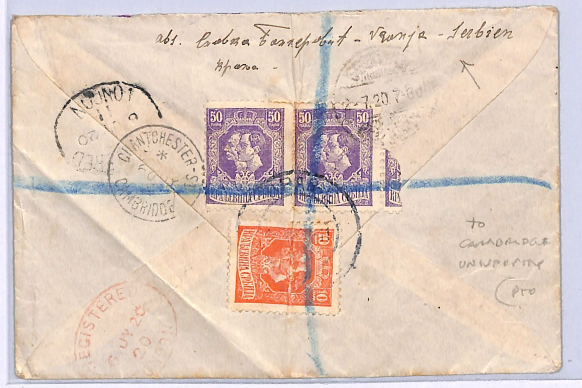 SERBIA Cover Belgrade 1920 Reg *CAMBRIDGE UNIVERSITY* Emmanuel College WF182