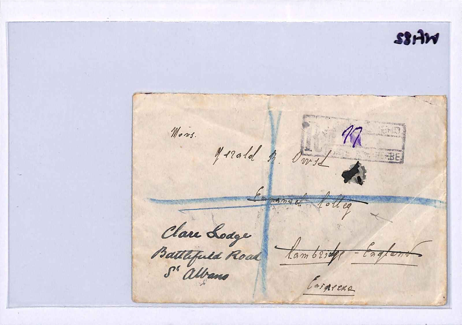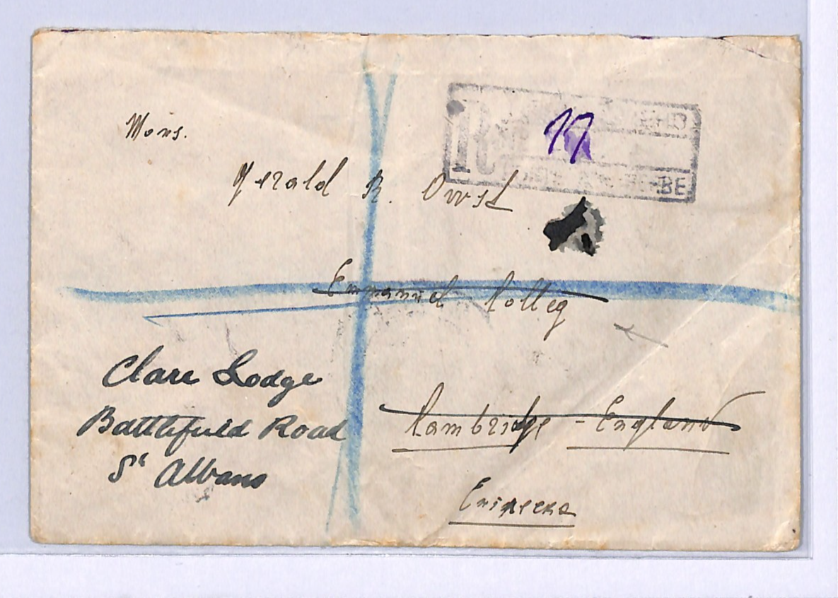 SERBIA Cover Registered Belgrade GB CAMBRIDGE UNIVERSITY St Albans Forwarded 1911 WF182