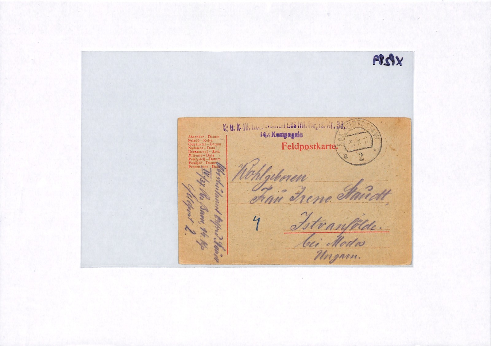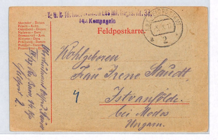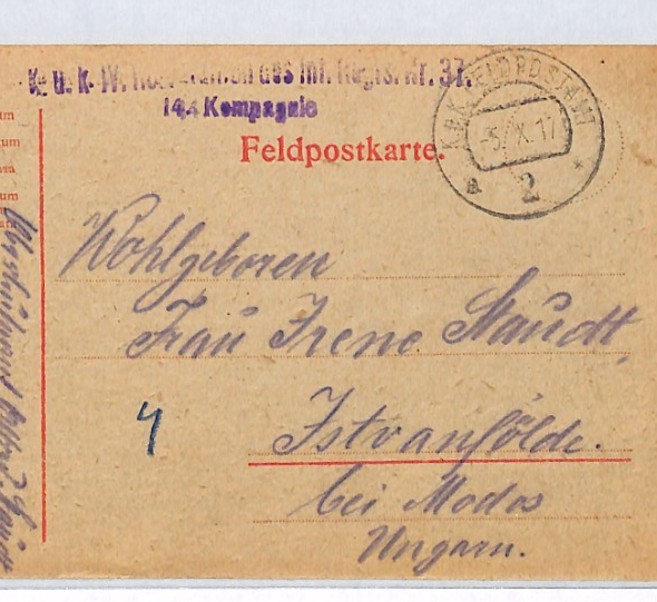 HUNGARY WW1 Card MILITARY FELDPOST Istvánfölde 1917 (Krajišnik Serbia) XP289