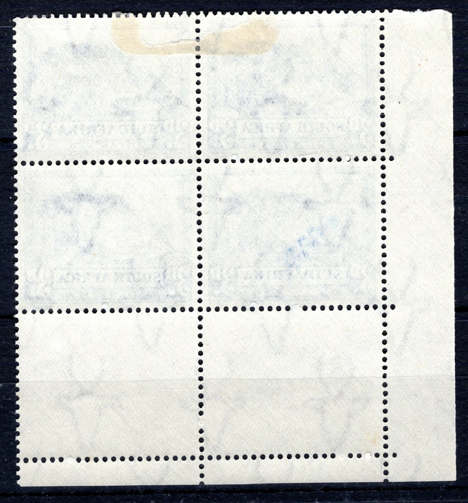 SOUTH AFRICA KGV SG.45c 3d Blue (1933) VARIETY Broken *R* AFRICA Block{4} SS4374
