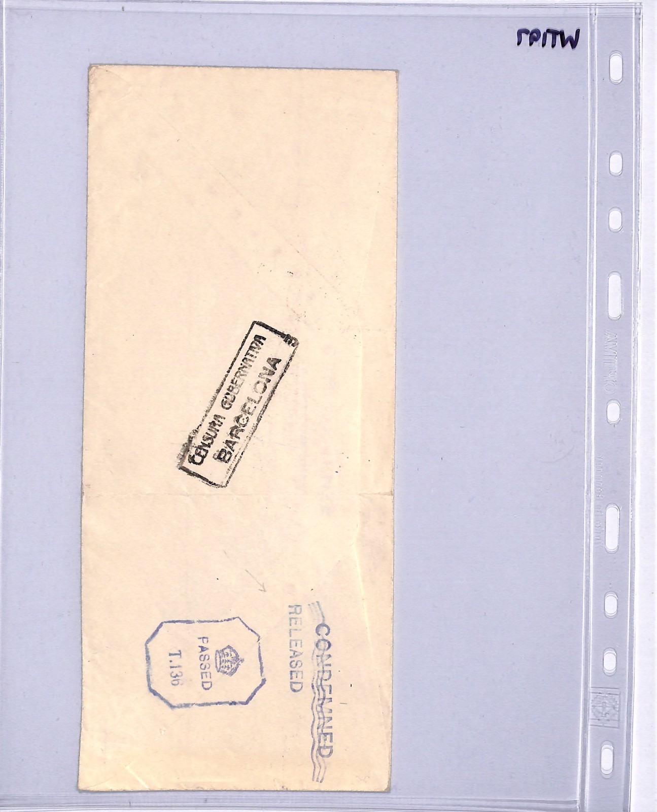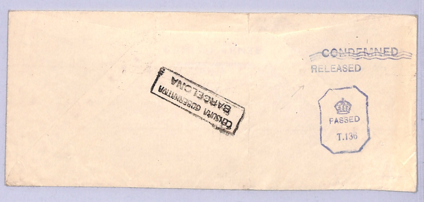 SPAIN Air 1944 FDC 5p HIGH VALUE *EL DIA DEL SELLO* Barcelona WW2 Censor WT197