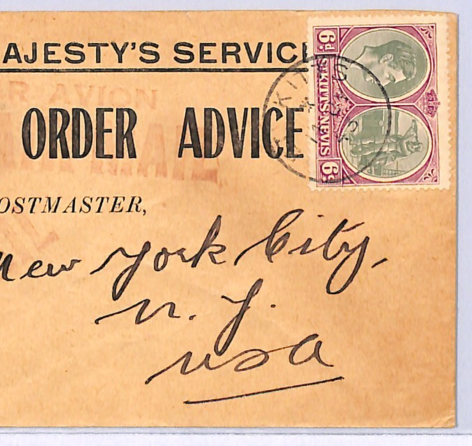 LEEWARD ISLANDS St Kitts Official Cover OHMS MONEY ORDER USA NY 1943 WQ209