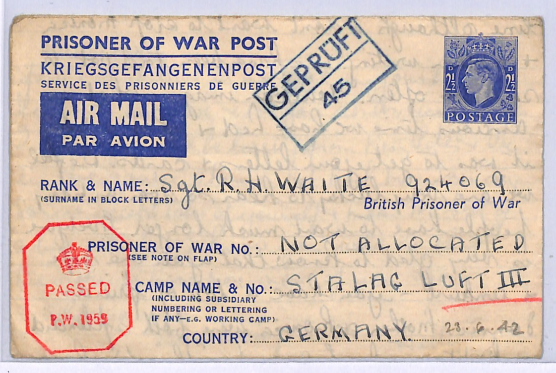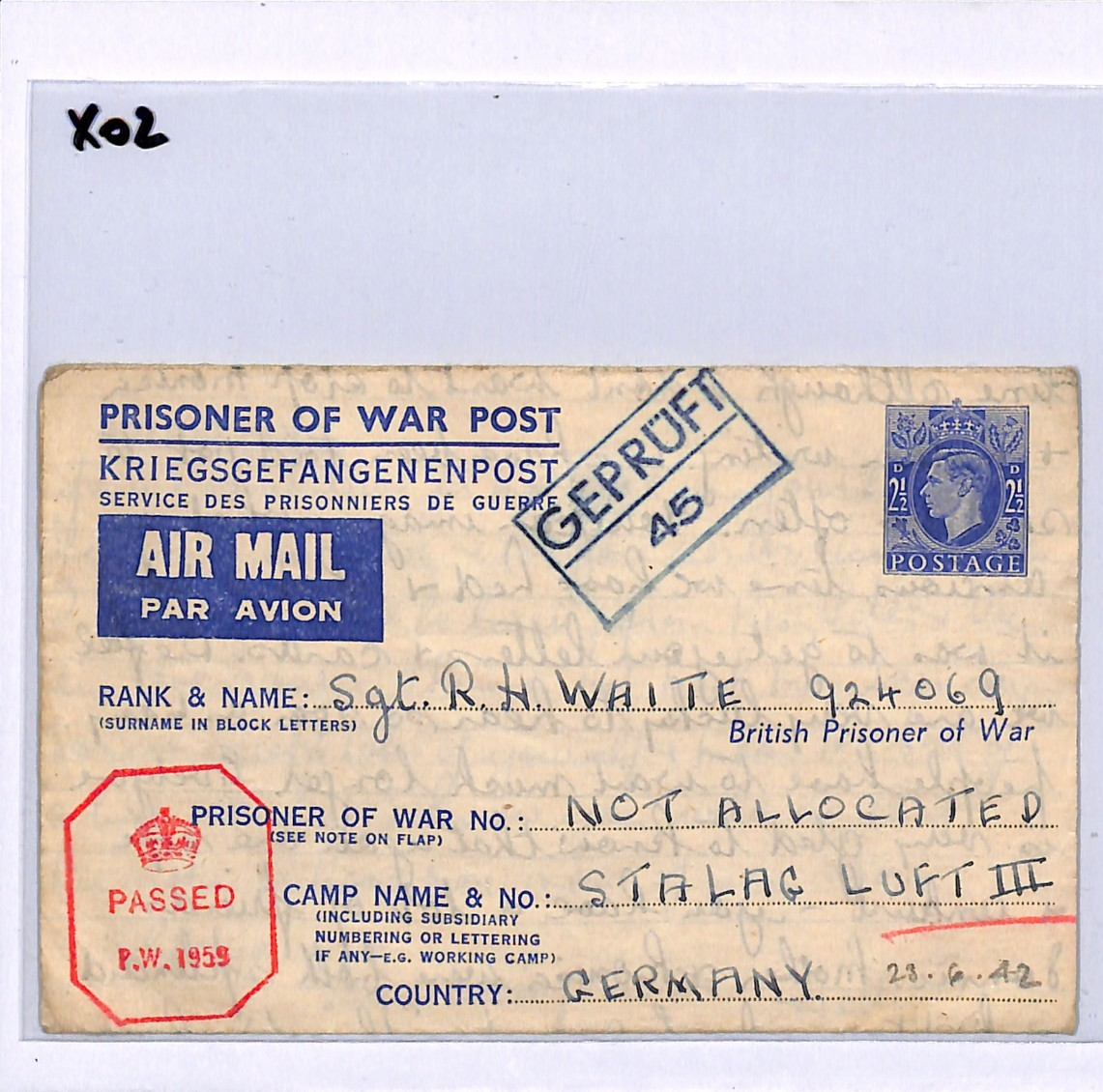 GB WW2 POW MAIL *STALAG LUFT III* GERMANY 1942 Guildford Surrey Stationery XO2