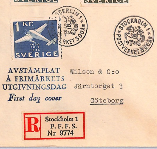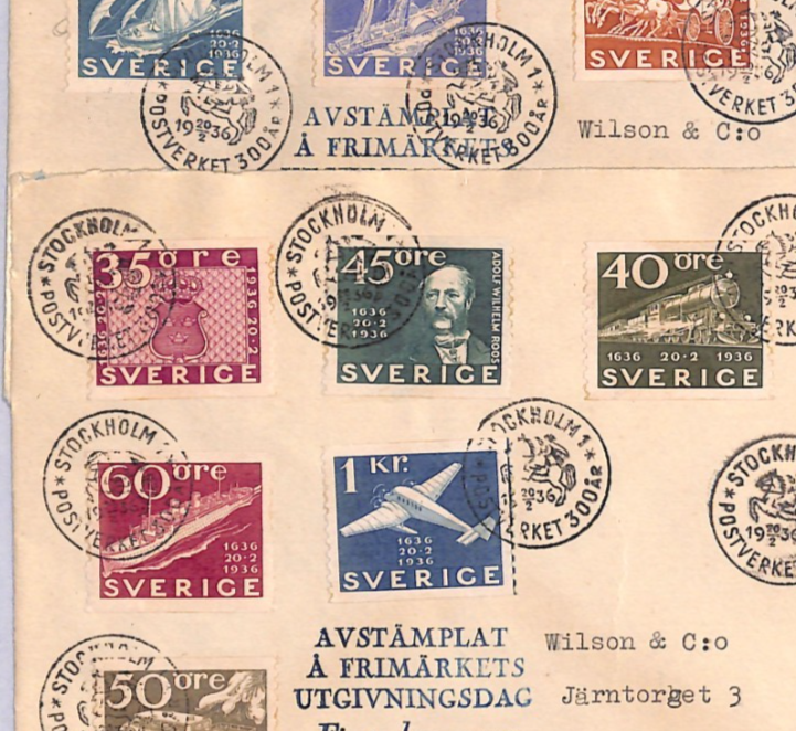 SWEDEN 1936 FDC SWEDISH POSTAL SERVICE *300th Anniversary* SPECIAL CDS Wilson First Day Covers{2} Set{12} Perf 10 YG384