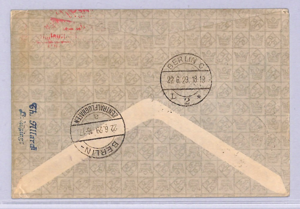 SWEDEN Air Mail Cover FIRST FLIGHT 1929 GERMANY Berlin Stettin Stockholm Kalmar Magdeburg WT71