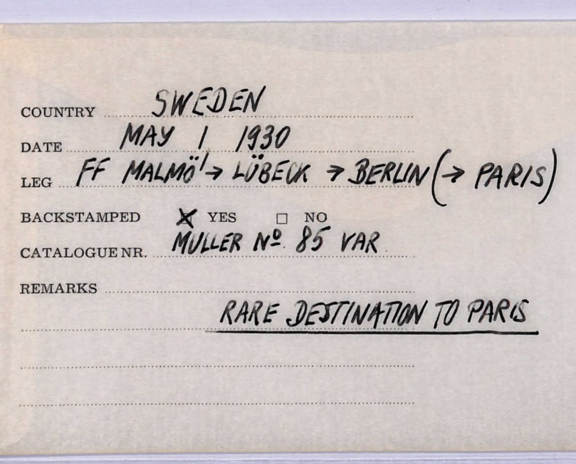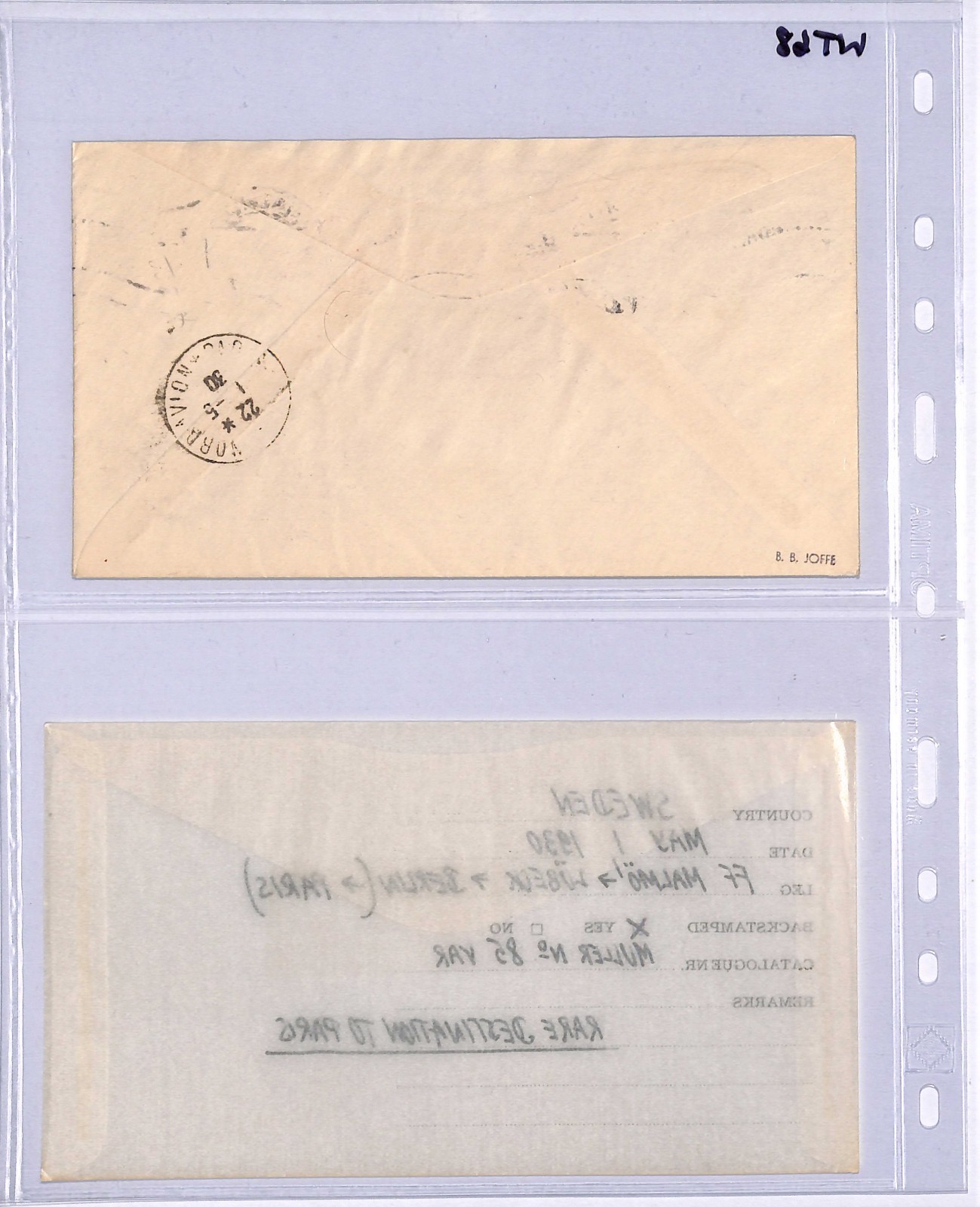 SWEDEN Air Mail 1930 Cover FIRST FLIGHT Malmo Cologne Paris 35o Rate {Joffe}WT68