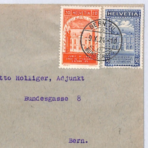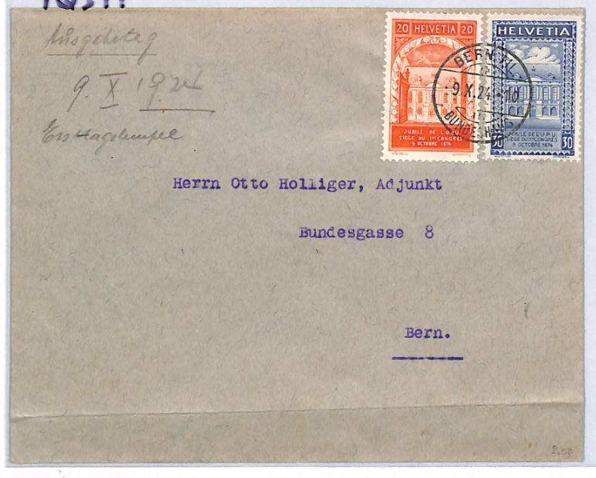 SWITZERLAND 1924 FDC *UPU* Jubilee First Day Cover BUNDESHAUS Bern CDS YQ377