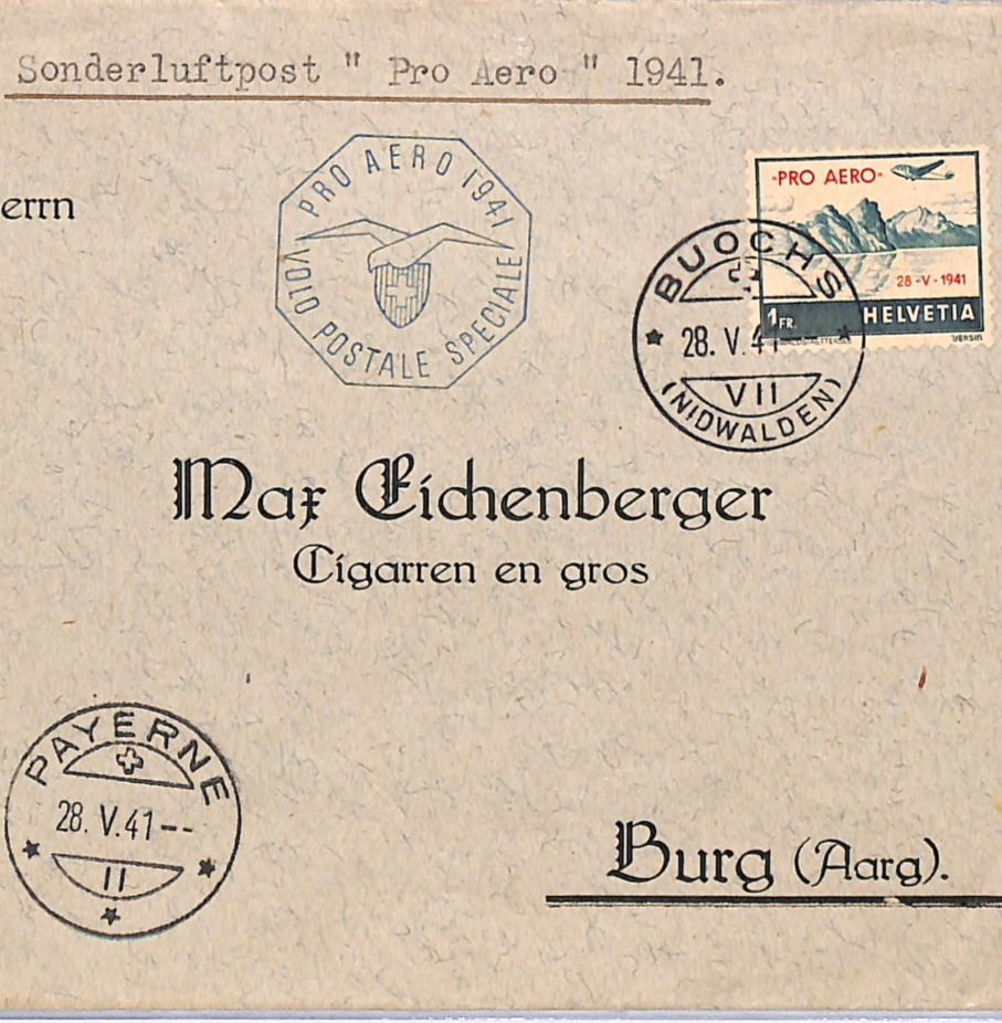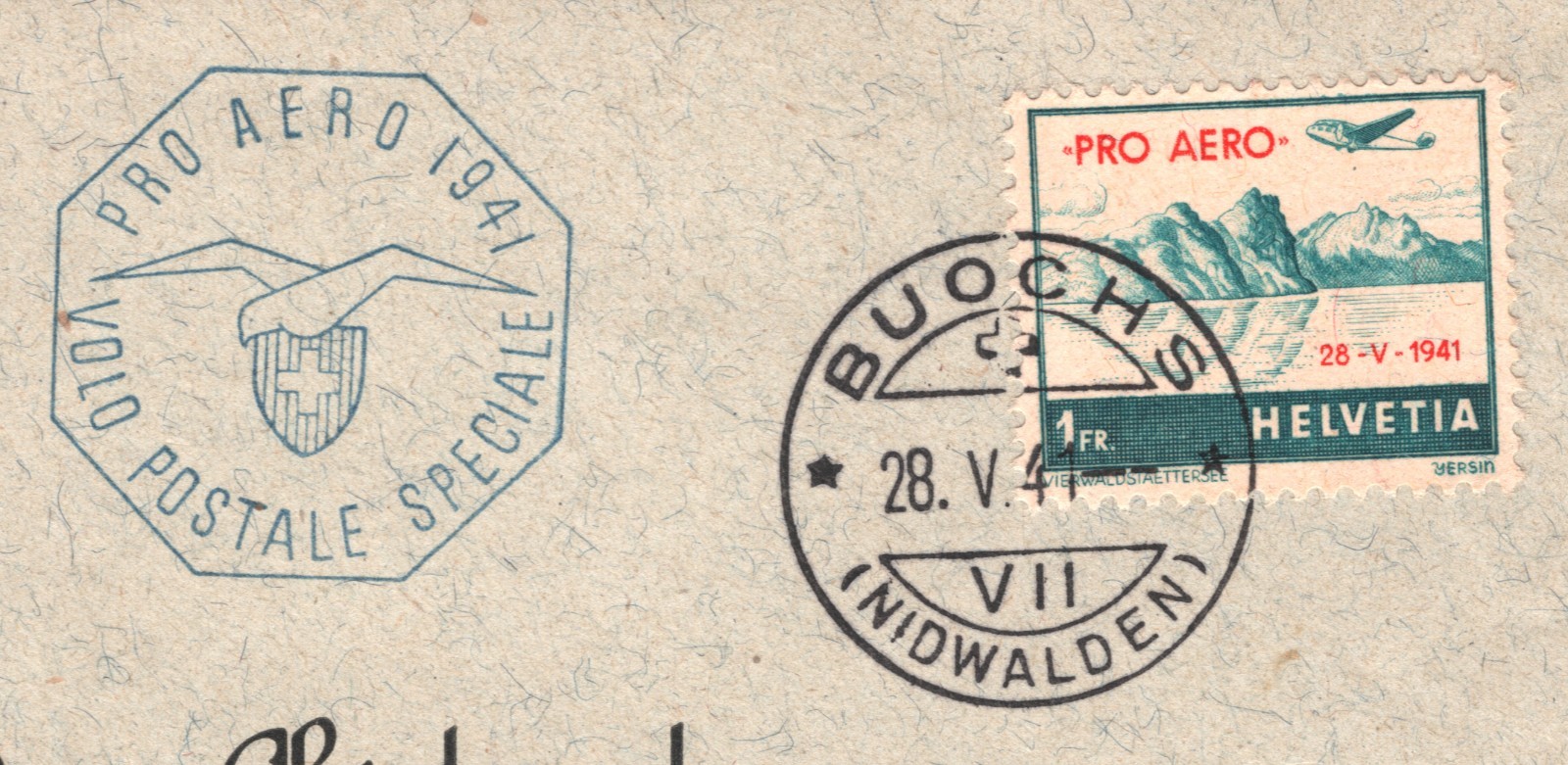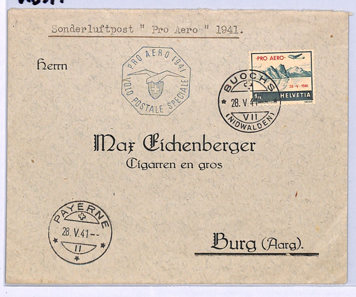 SWITZERLAND Air Mail Cover SPECIAL FLIGHT PRO AERO 1941 Buochs-Payerne WB377
