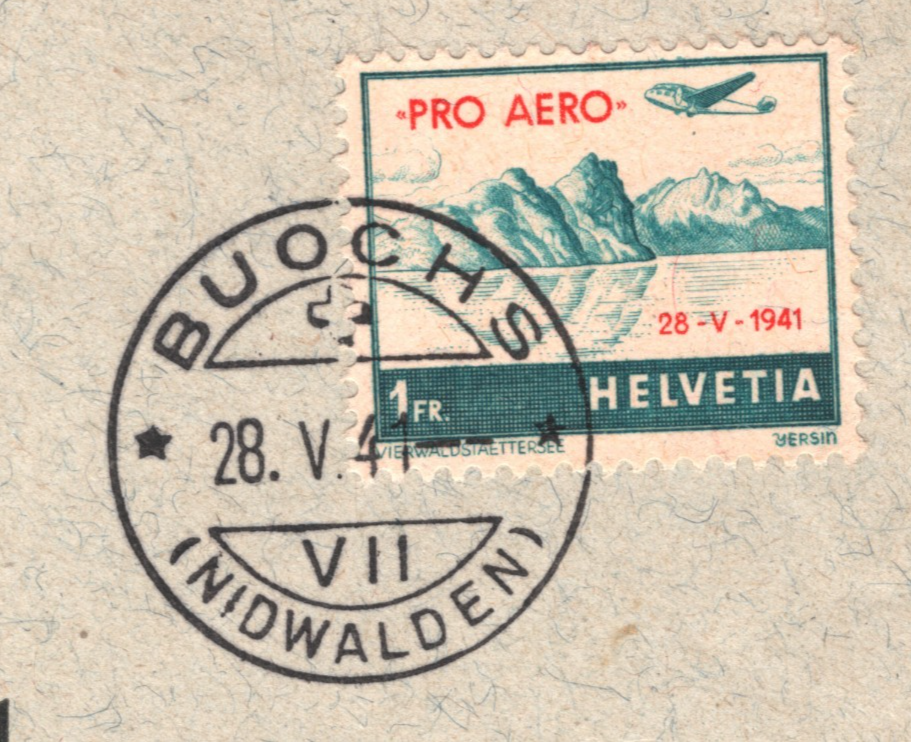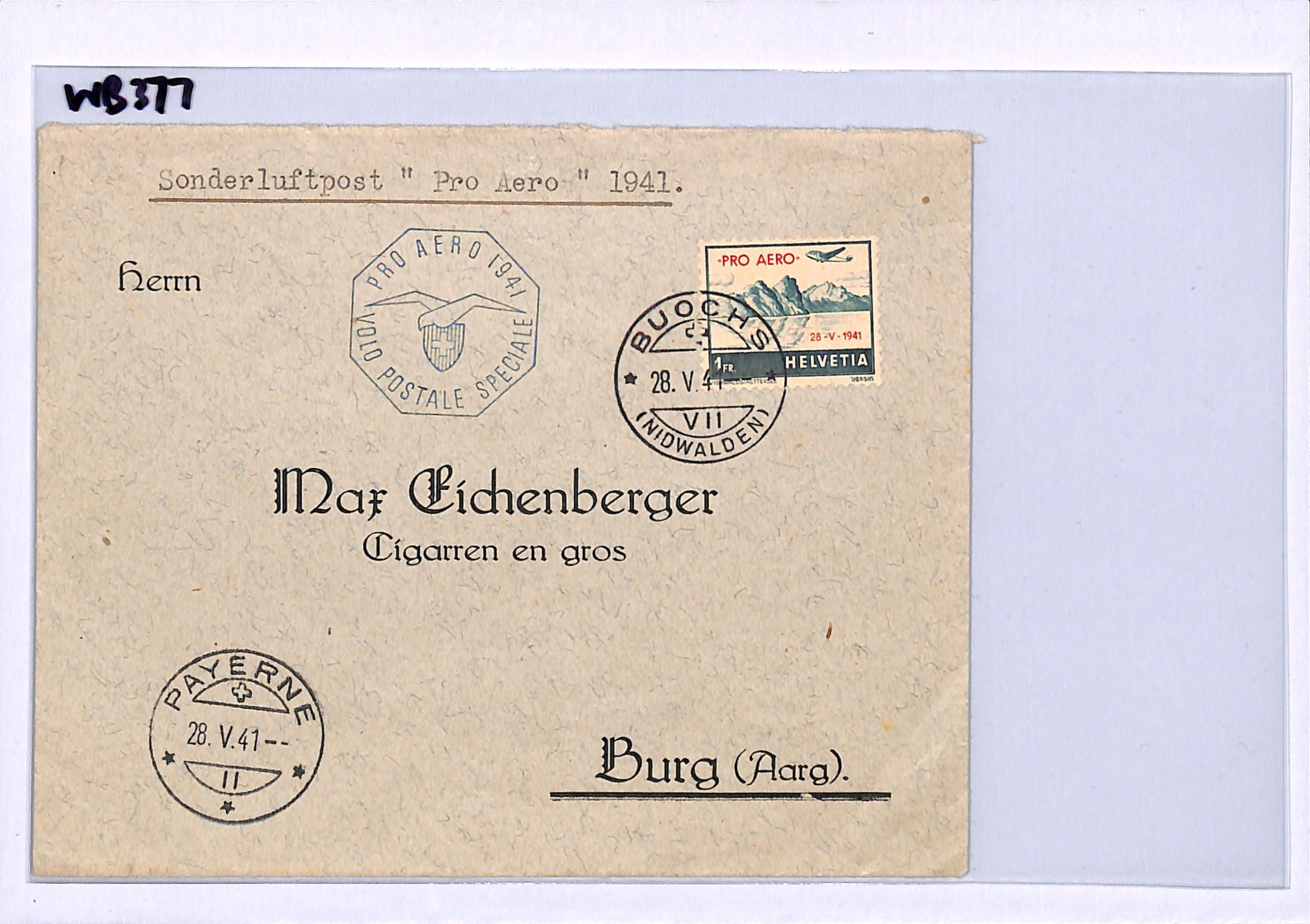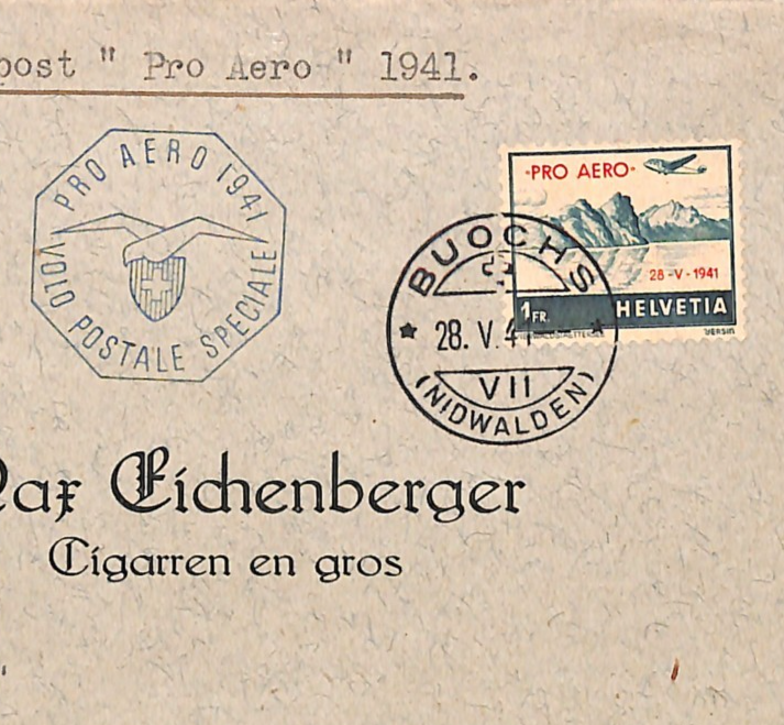SWITZERLAND 1941 FDC 1f Air Mail PRO AERO Overprint FLIGHT Buochs-Payerne WB377