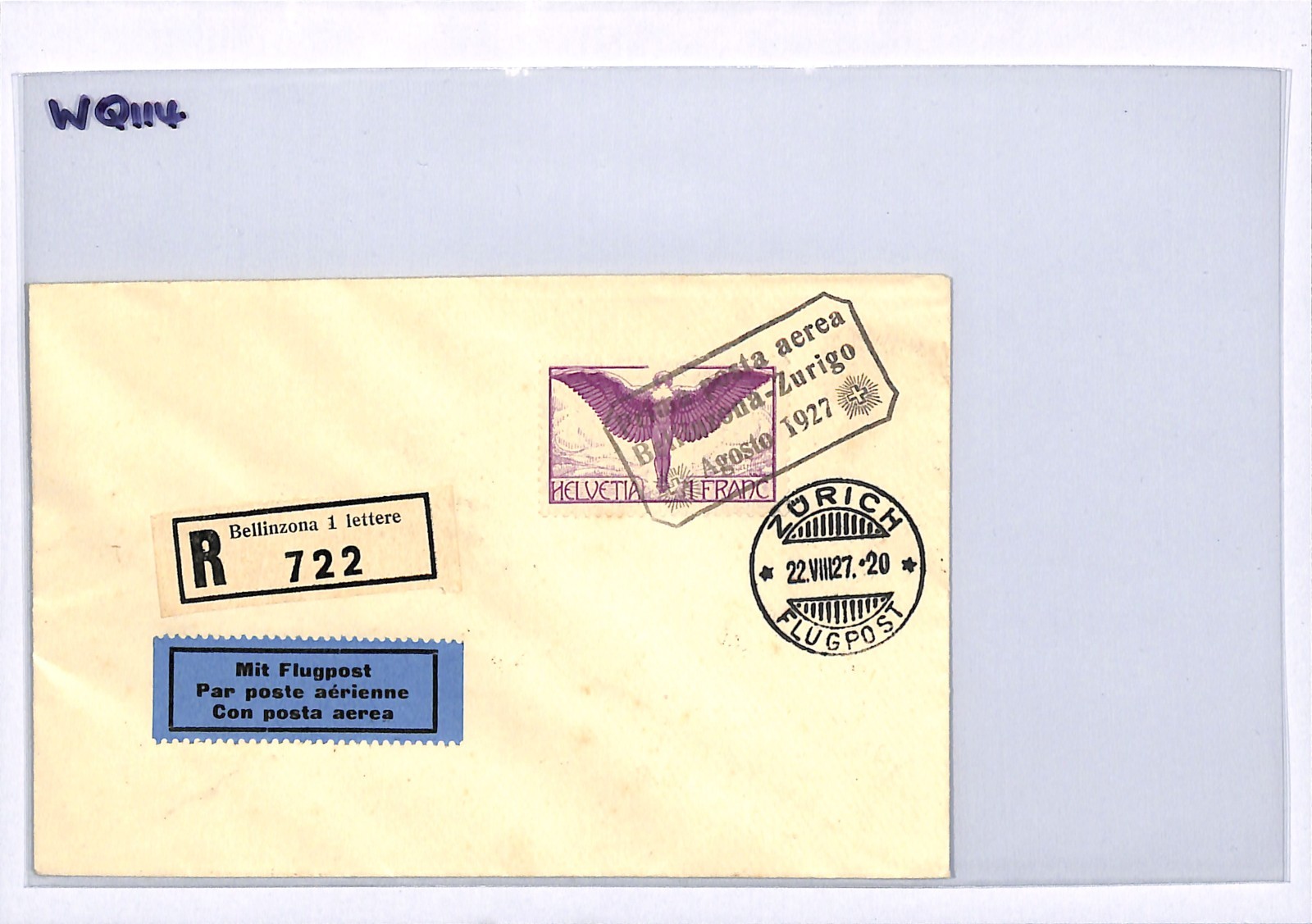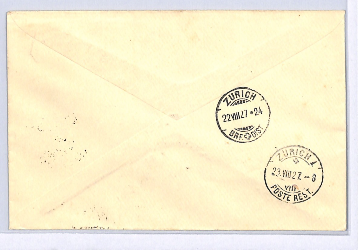 SWITZERLAND Air Mail Cover FIRST FLIGHT 1927 Bellinzona Zurich {samwells}WQ114