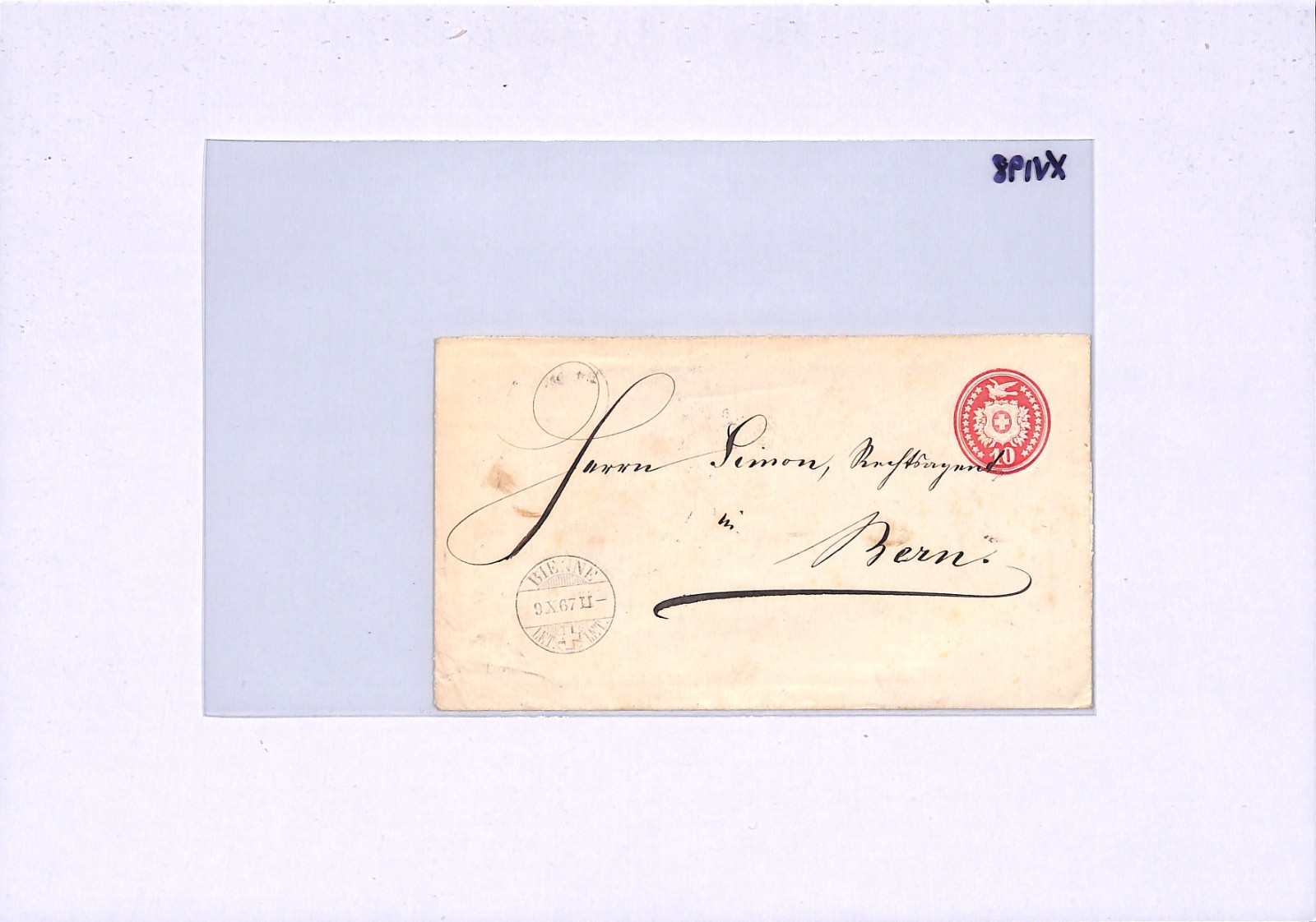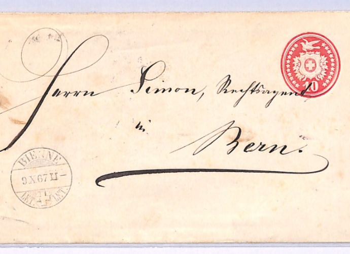 SWITZERLAND RAILWAY TPO *AMB-CIRCUL 2* CDS Stationery Cover Bienne Bern 1867 XV198